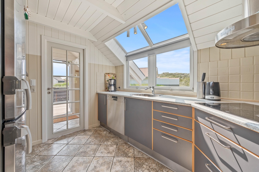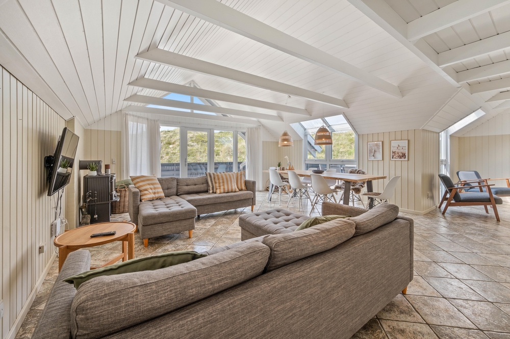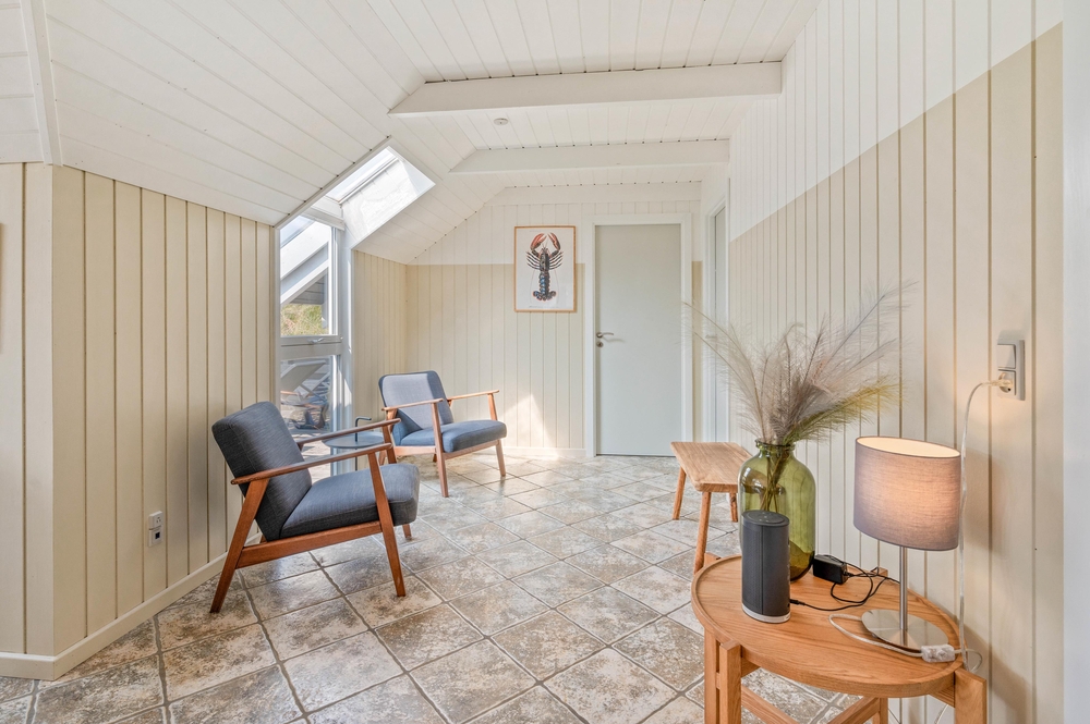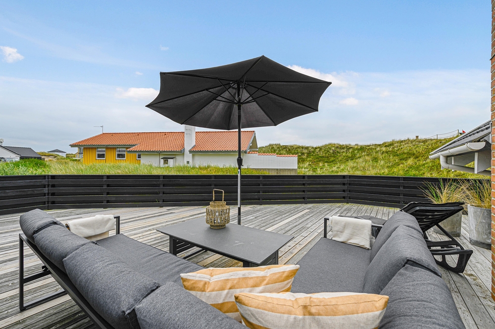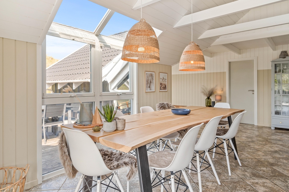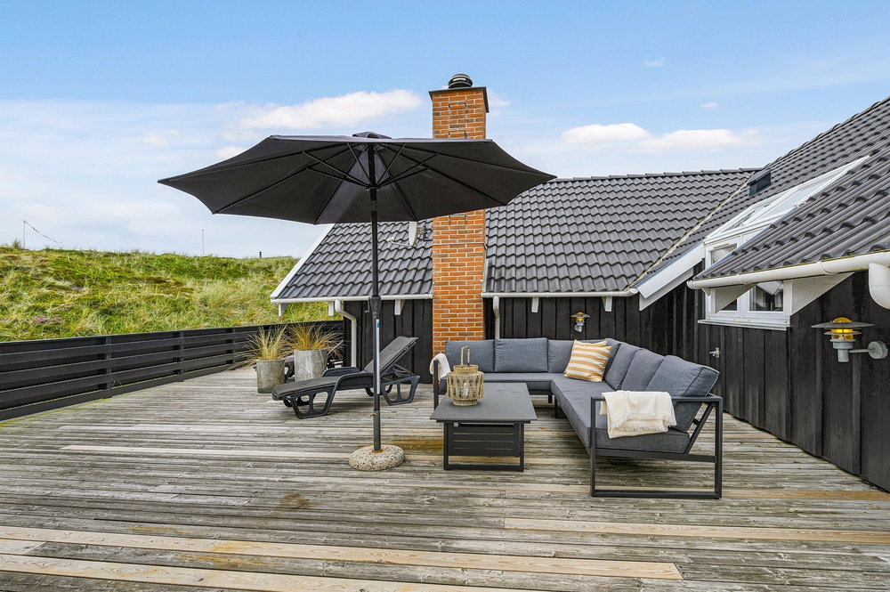 Ein schönes Ferienhaus im Hvidbjergvej 113, das auf einem Naturgrundstück in Søndervig liegt. Von hier sind es nur 250 Meter bis zur Nordsee. Es gibt eine geschlossene Terrasse nach Süden und Osten, auf der man sich fast den ganzen Tag aufhalten kann. Das Haus liegt an der äußersten Dünenreihe und ist sehr gepflegt.