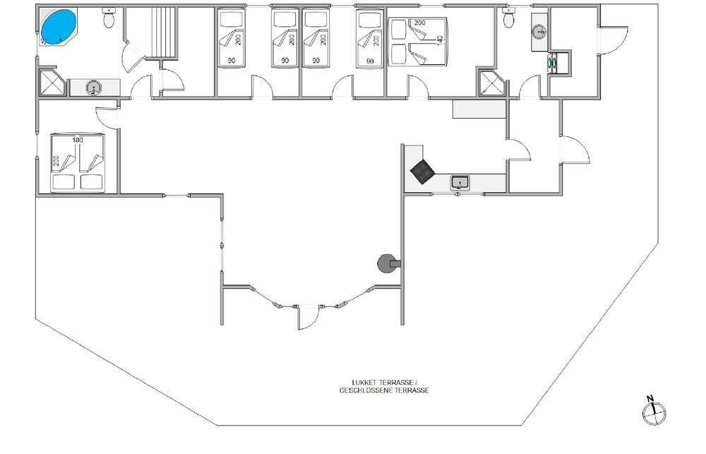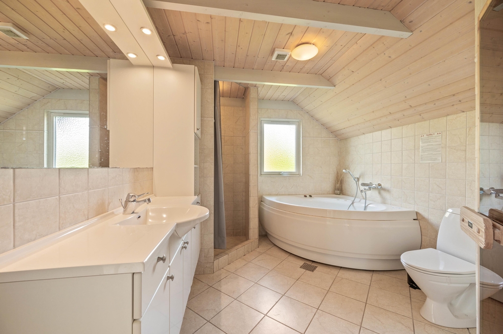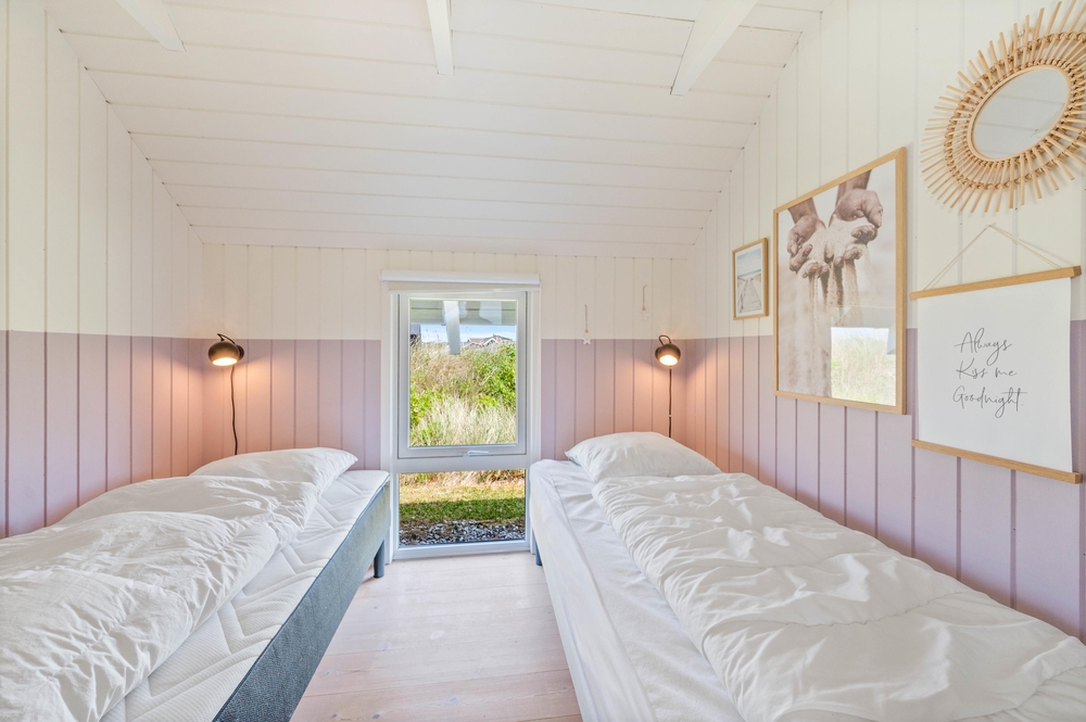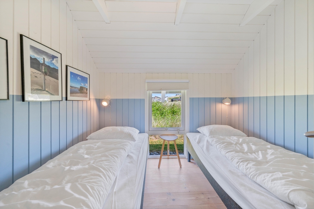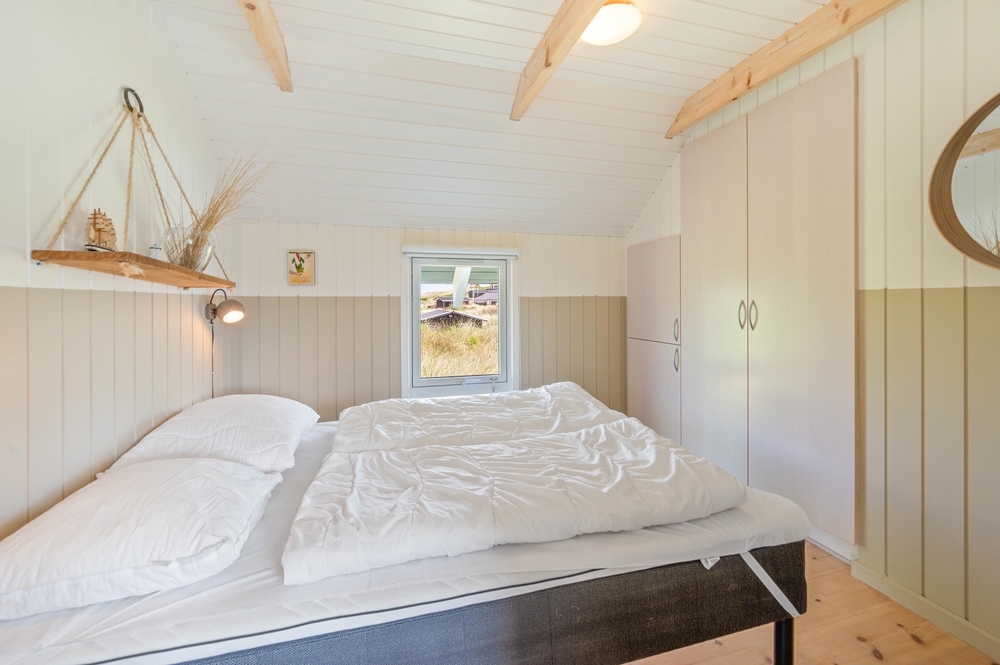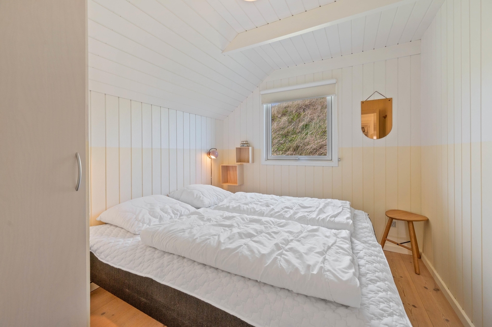Dieses Ferienhaus wurde 2004 gebaut und hat Platz für 8 Personen verteilt auf 4 Schlafräumen. 2 Schlafzimmer haben jeweils ein Doppelbett und in den anderen 2 Schlafzimmern stehen jeweils 2 Einzelbetten, in allen Zimmern wurde Holzboden verlegt. Im Haus gibt es 2 Badezimmer mit Fliesen, Duschkabine und Fußbodenheizung.