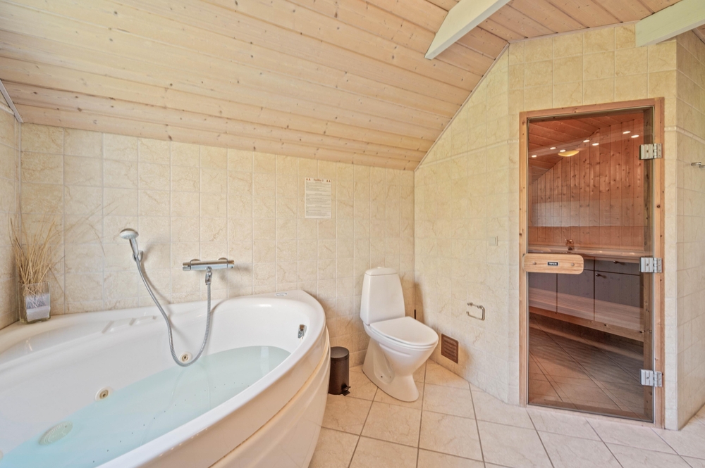 In dem größeren Badezimmer gibt es außerdem noch eine Sauna und einen 2-Personen Whirlpool. In dem kleinen Badezimmer findet Ihr noch eine Waschmaschine und einen Wäschetrockner.