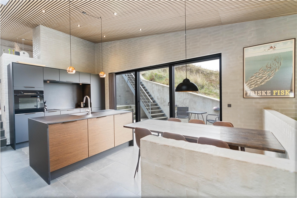 Das Ferienhaus im Hvidbjergvej 125 ist modern eingerichtet und bietet auf 3 Ebenen, sowohl drinnen als auch draußen Entspannung. Die Einrichtung ist stilvoll in hoher Qualität mit hohen, hellen Eichendecken und einer modernen gut ausgestatteten Küche. Hier werden die Hobbyköche unter euch bestimmt viel Spaß haben. Die großen Fenster lassen die 122 m2 noch geräumiger erscheinen, und es gibt viel Platz für alle 6 Feriengäste.