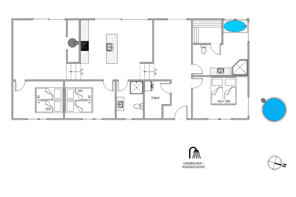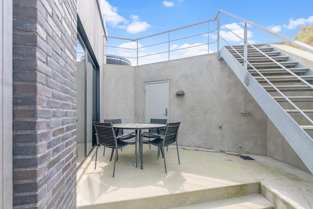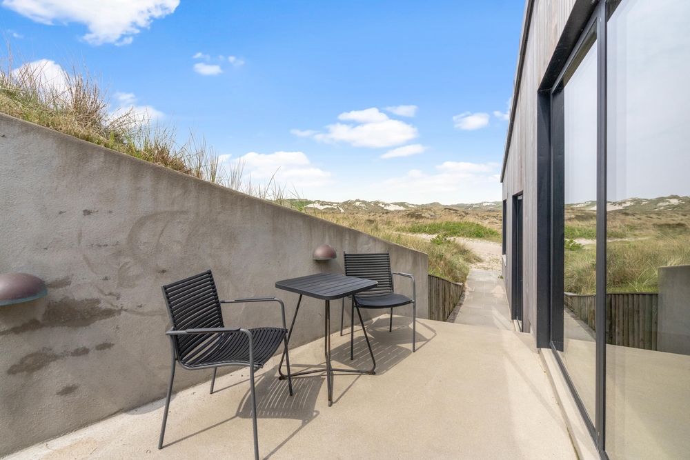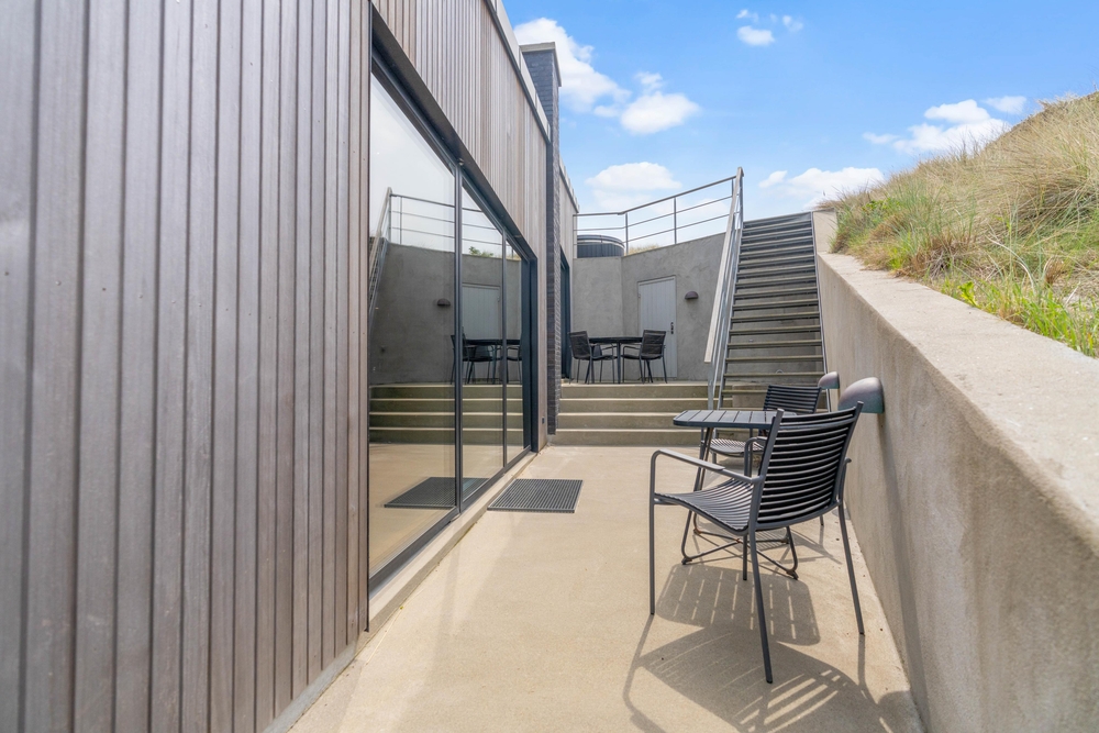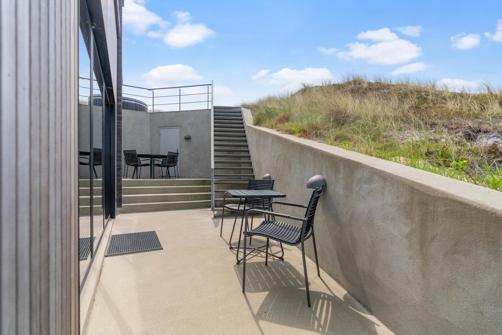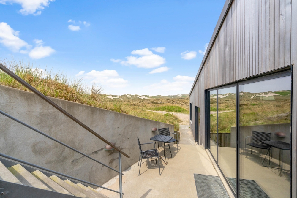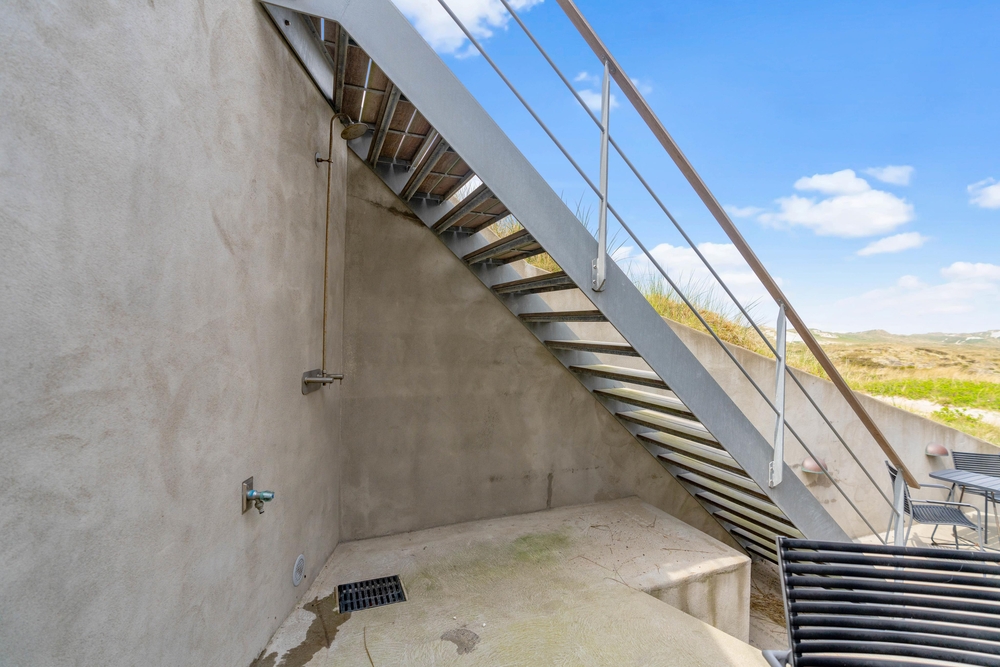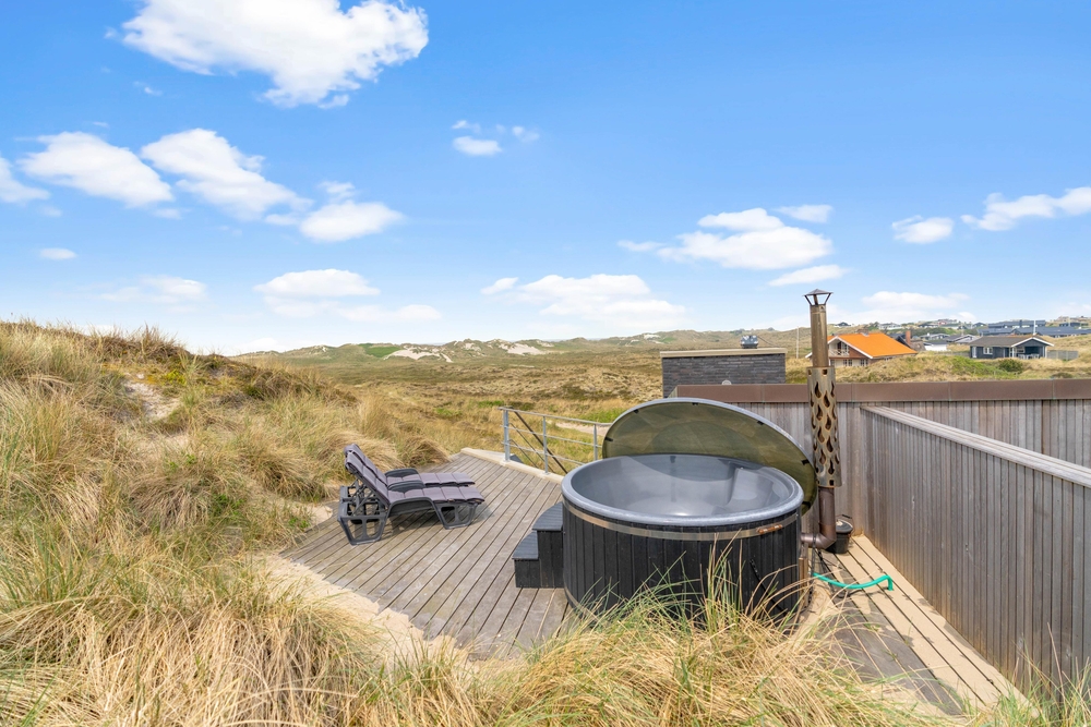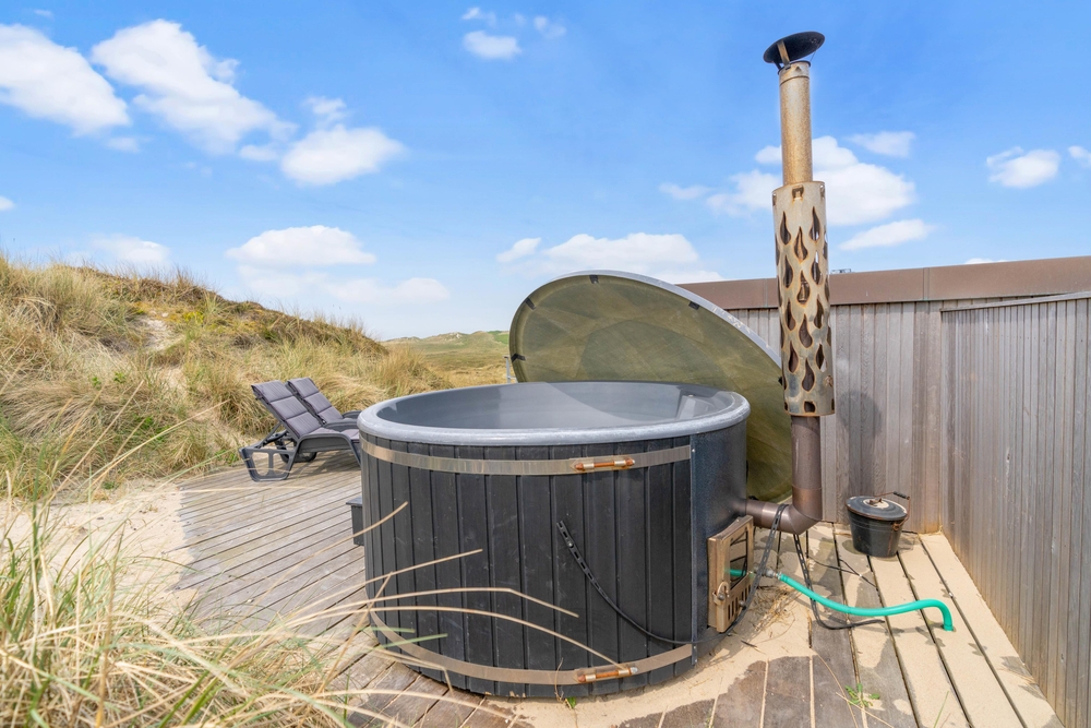 Das Ferienhaus hat mehrere Terrassen, sowohl abgeschirmt als auch offen. Auf der hoch gelegenen, offenen Terrasse befindet sich eine Badetonne für 6 Personen. Euch steht eine Außendusche, die ihr von April-November nutzen könnt, zur Verfügung. Sie sorgt für sandfreie Füße, wenn ihr das Ferienhaus betretet. Von der Terrasse aus habt ihr auch einen tollen Ausblick. Selbstverständlich wurden für Gartenmöbel, Liegestühle und einen Grill gesorgt, damit ihr die sonnigen Tage genießen könnt.