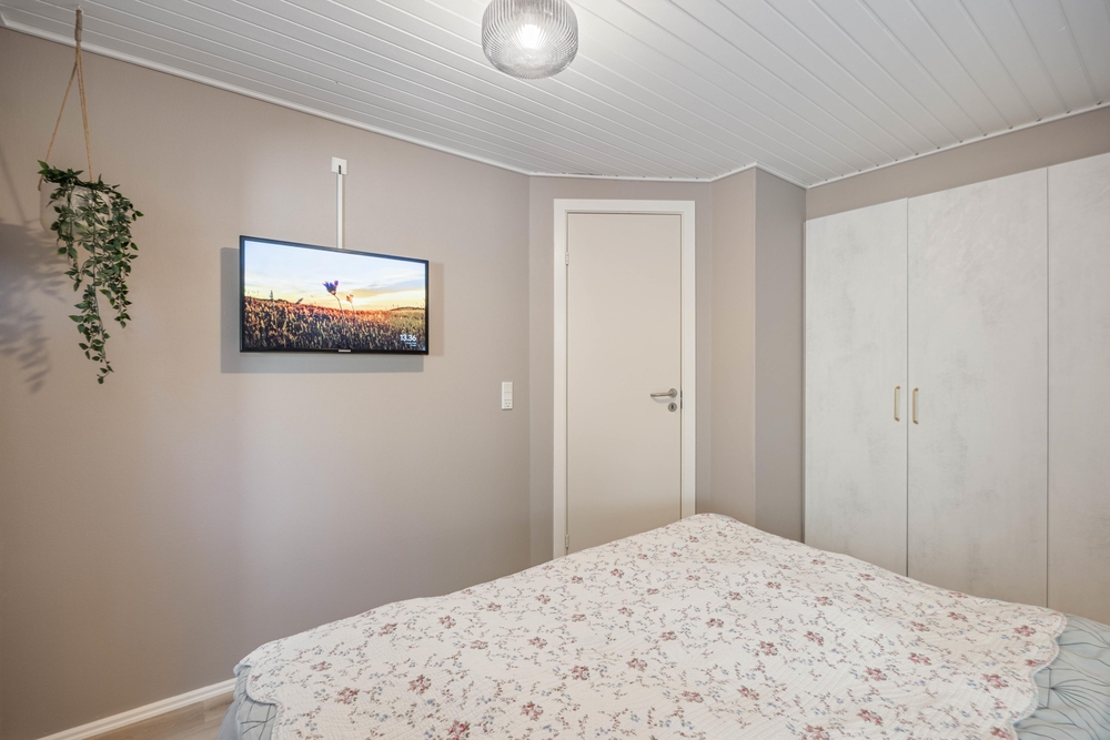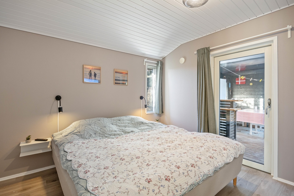 Neben dem Wohnzimmer bietet das Ferienhaus 2 Schlafzimmer, die für erholsamen Schlaf nach einem aufregenden Ferientag sorgen. Eines der Schlafzimmer verfügt über ein Doppelbett, während ihr in dem anderen Schlafzimmer 2 Einzelbetten findet. Außerdem gibt es im Ferienhaus ein Badezimmer, welches über eine Fußbodenheizung verfügt. Ebenso wie das Badezimmer wurde auch im Wohnzimmer eine Fußbodenheizung verbaut.
