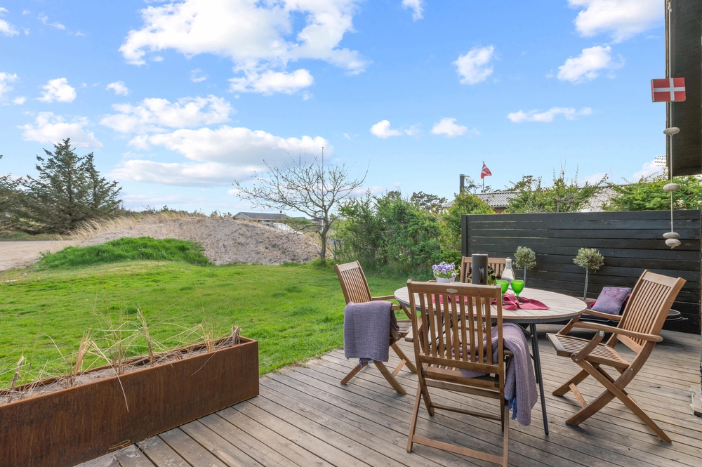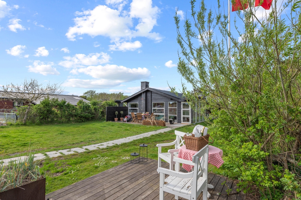 Am Hvidbjergvej 14 in Søndervig ist dieses helle Sommerhaus bereit für einen Urlaub für bis zu 4 Personen ? ein ideales Ferienhaus für ein Paar oder eine kleine Familie. Im Innenbereich des Ferienhauses erwartet euch eine helle Ausstattung und im Außenbereich stehen euch mehrere Terrassen, eine Außenküche, eine Badetonne und eine Außendusche zur Verfügung. Auch euer Hund darf hier mitgenommen werden.
