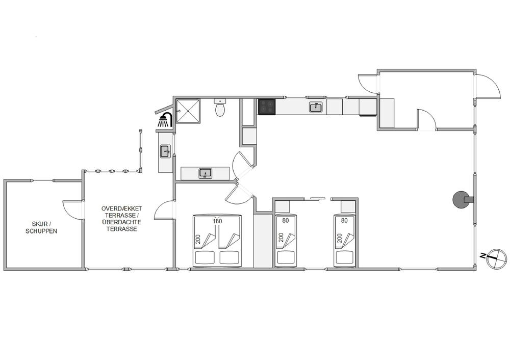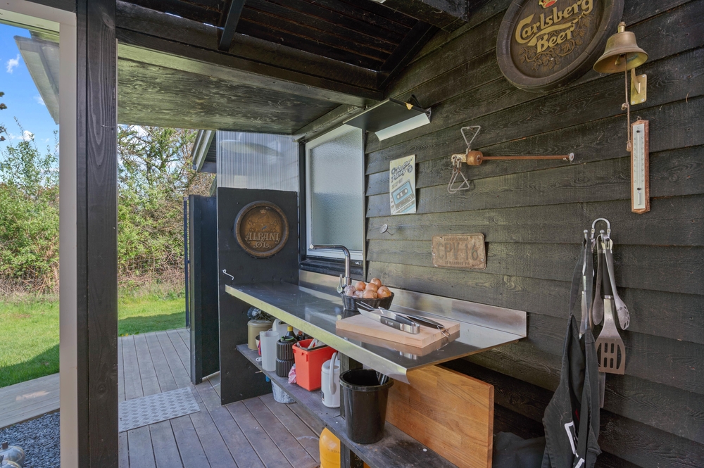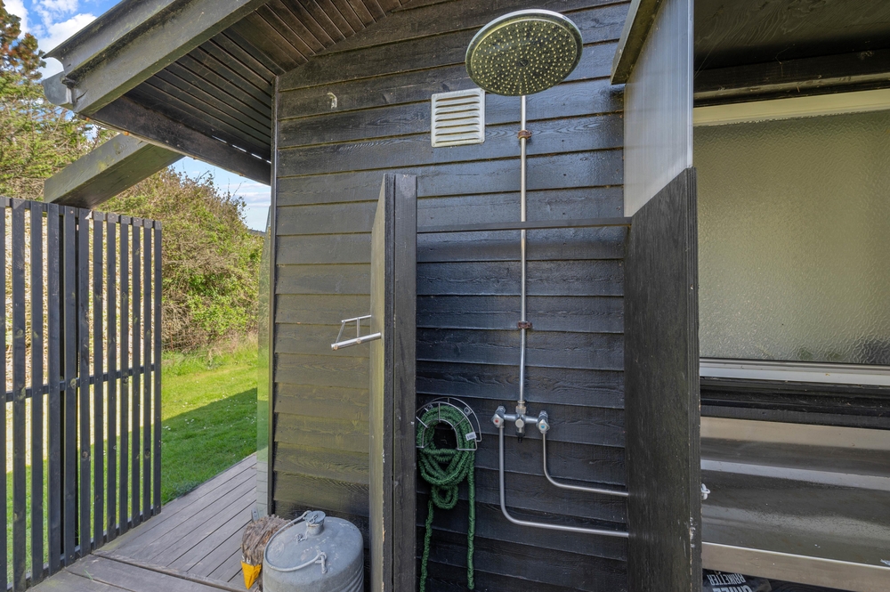 Im Außenbereich des Ferienhauses wartet zudem eine Außendusche auf euch, unter der ihr euch nach einem Tag am Strand den restlichen Sand vom Körper abspülen könnt. Um Frostschäden zu vermeiden, könnt ihr die Außendusche von April-November nutzen. Ebenso bietet euch das Ferienhaus die Möglichkeit, ein leckeres Abendessen auf dem Grill in der Außenküche zuzubereiten und anschließend auf einer der Terrassen zu genießen. Wenn sich der Tag dem Ende zuneigt, dann genießt ein Bad in der Badetonne und schaut euch den fantastischen Sternenhimmel dabei an.