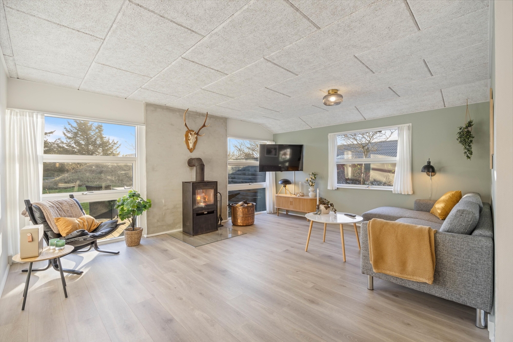 Im Ferienhaus erwartet euch ein helles Interieur und bereits beim Betreten werdet ihr euch hier mit Sicherheit wie zu Hause fühlen. Eine energiefreundliche Wärmepumpe sorgt in diesem Ferienhaus das ganze Jahr über für ein angenehmes Raumklima. Das Herzstück des Ferienhauses ist das Wohnzimmer, in dem ihr sicherlich viele schöne Momente eures Urlaubs verbringen werdet. Am Esstisch finden alle Platz, um die gemeinsamen zubereiteten Mahlzeiten zu genießen, aber auch zu langen Spieleabenden könnt ihr euch hier versammeln. Dabei rundet der Holzofen mit seinen knisternden Flammen im Hintergrund die Urlaubsatmosphäre ab.