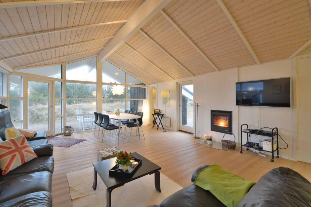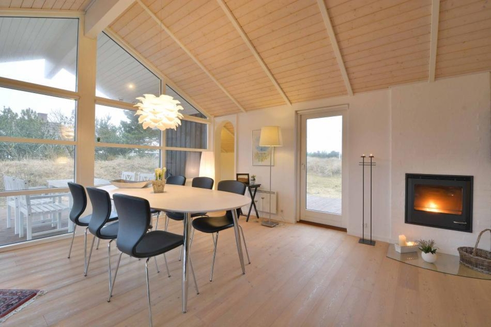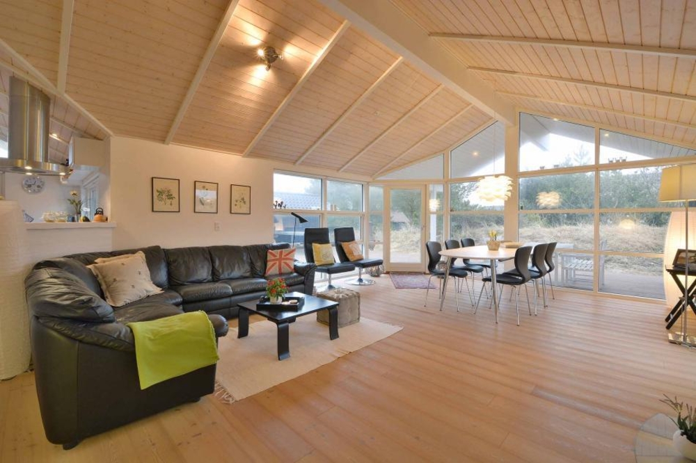 Dieses geräumige Ferienhaus mit 105 Quadratmetern empfängt euch mit offenen Armen. Im Hvidbjergvej 21 in Søndervig findet ihr ein klassisches Ferienhaus mit einer hohen holzvertäfelten Decke und hellen Wänden und Böden im Wohnbereich, was euch einen schönen Raumeindruck vermittelt. Hier könnt ihr als Familie das ganze Jahr über einen schönen Urlaub genießen. Die drei Schlafzimmer sind geräumig und mit Schränken ausgestattet, außerdem gibt es 2 schöne Badezimmer, wobei das größere von beiden mit einem Whirlpool ausgestattet ist. An kühleren Abenden könnt ihr es euch am gemütlichen Holzofen im Wohnzimmer mit einem warmen Kakao gemütlich machen. Die energiesparende Luft-zu-Luft-Wärmepumpe des Ferienhauses sorgt das ganze Jahr über für eine angenehme Temperatur im Ferienhaus.