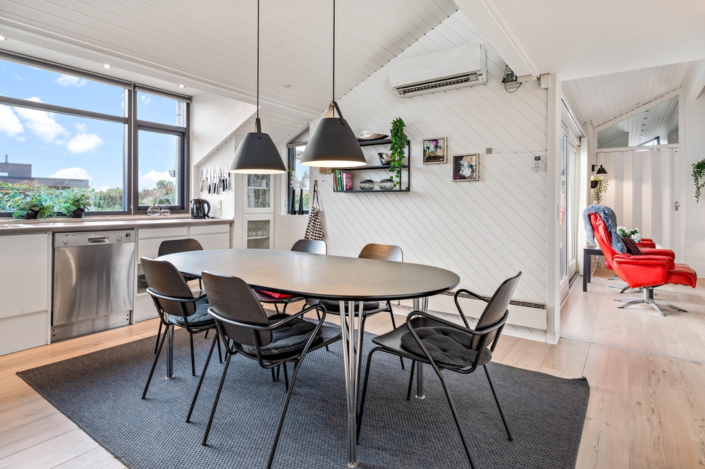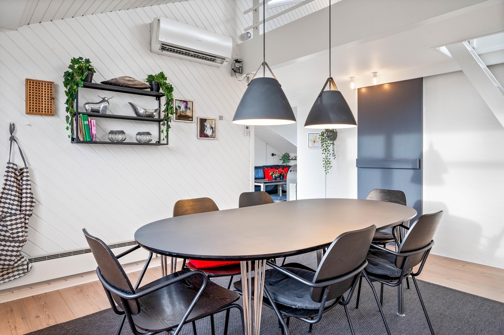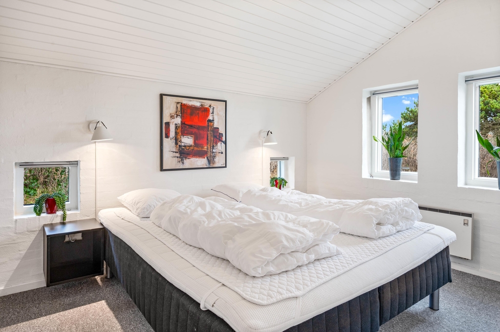 Ein wirklich interessantes Haus mit schicken Details und gemütlicher Einrichtung; drei schöne und helle Schlafzimmer, zwei mit Doppelbetten und ein Zimmer mit zwei Einzelbetten.