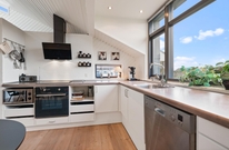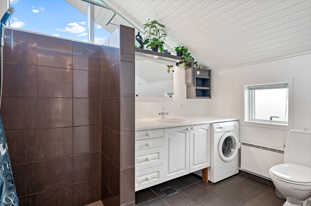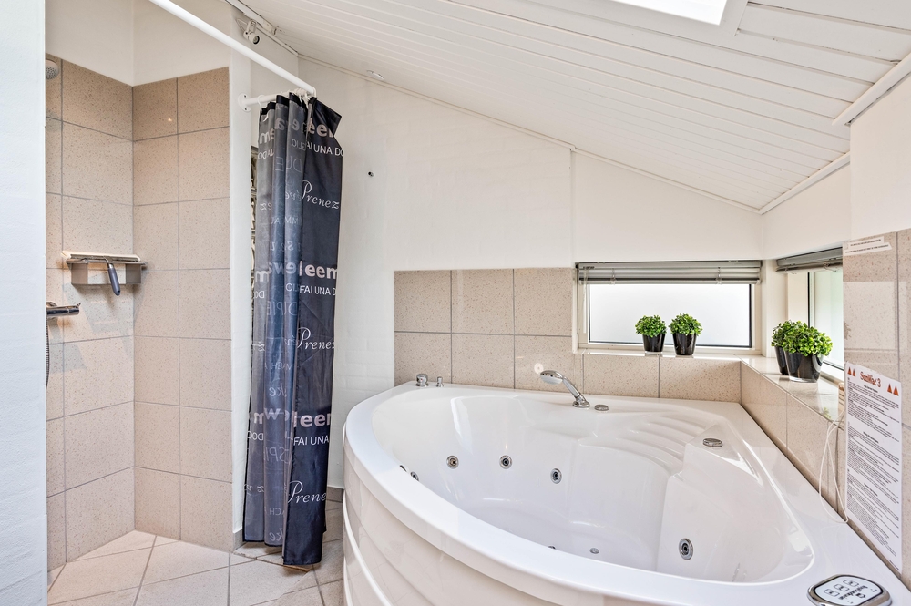 An beiden Enden des Hauses befindet sich je ein Badezimmer, davon verfügt das eine über eine Dusche und das andere über Whirlpool und Dusche. Die Küche ist schick, hell und lädt wirklich zum Zubereiten der Mahlzeiten ein.