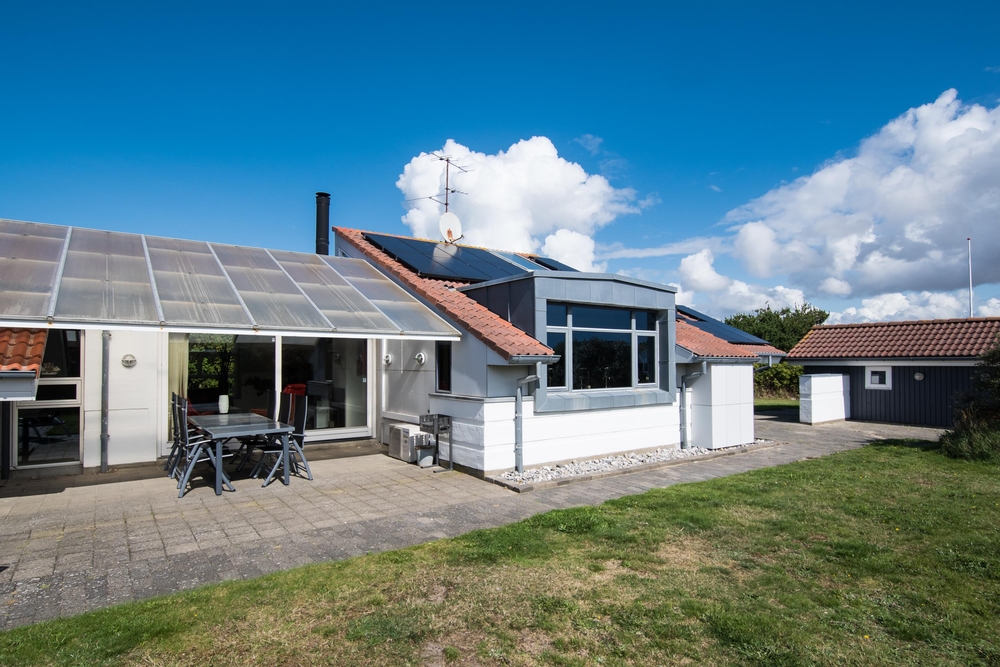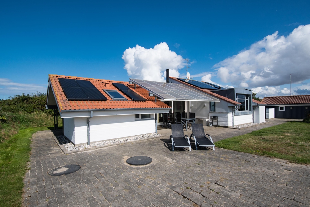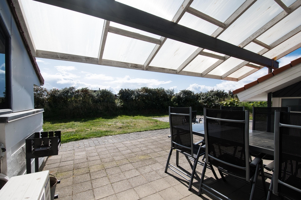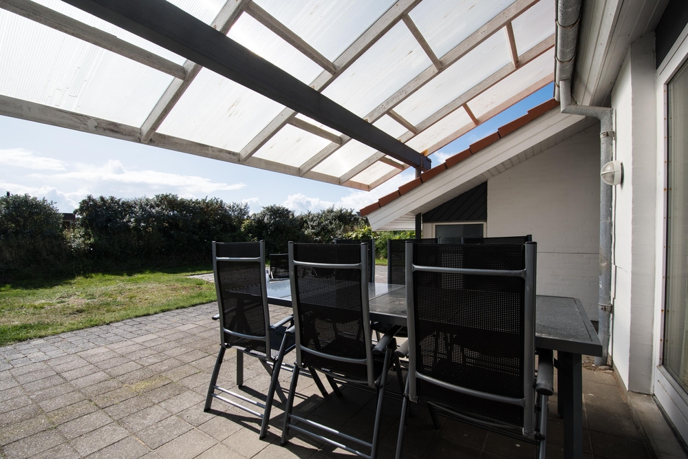Mit richtig schöner und großer Terrasse, bei der ein Teil teilweise überdacht ist und dadurch euere Abende auf der Terrasse wunderbar verlängert werden können. An den Enden des Hauses sind die Terrassen etwas mehr abgeschirmt und bieten somit Schutz vor dem Wind.