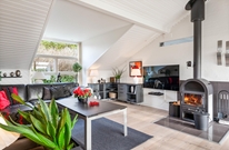 Im Wohnzimmer könnt Ihr die Abende richtig vor dem Kaminofen genießen. In diesem superschicken Haus sind auch ein Flachbildschirm-TV und natürlich gratis WLAN-Internet-Zugang vorhanden.