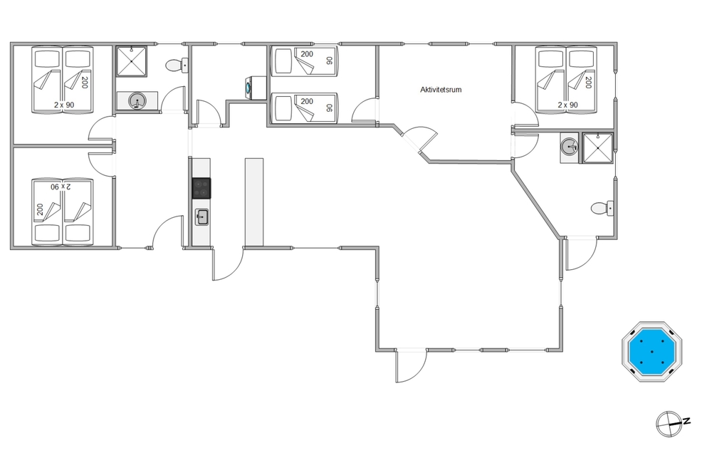 Für die kleinen und großen Sportler unter euch geht es ab in den Aktivitätsraum an den Kickertisch, um ein kleines Fußballturnier zu veranstalten. Es gibt in diesem Ferienhaus so viele Möglichkeiten, einen spannenden Urlaub zu verbringen.In diesem schönen Sommerhaus wurde an alles gedacht. Es befinden sich praktischerweise noch eine Waschmaschine und ein Trockner im Sommerhaus, das spart Platz beim Packen.