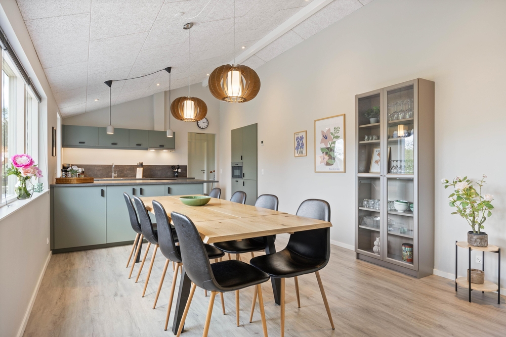 Nicht nur, dass alles verfügbar ist, was für ein perfektes Menü vonnöten ist, sondern es gibt so viele Annehmlichkeiten, wie z. B. einen Induktionsherd und eine Spülmaschine.Der riesige Esstisch wird nicht nur der Treffpunkt für die Mahlzeiten sein, sondern lädt dazu ein, mal wieder die Gesellschaftsspiele auszupacken. Solltet ihr stattdessen lieber einen Film streamen wollen, lädt das moderne und gemütliche Wohnzimmer dazu ein.