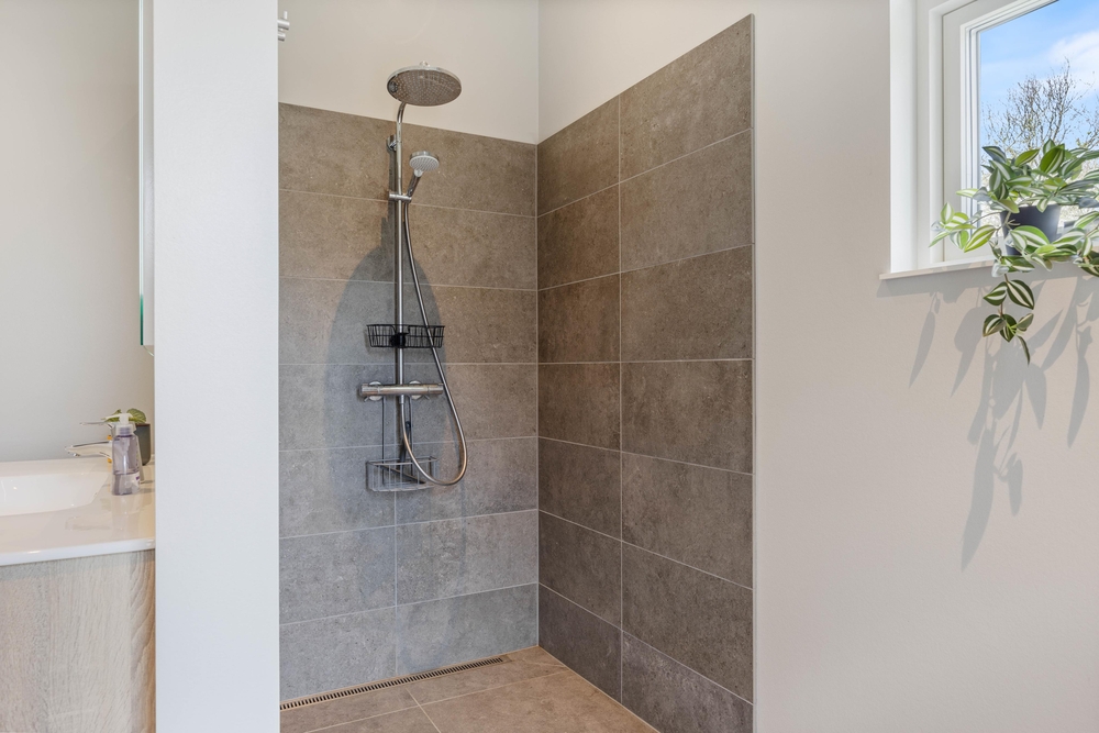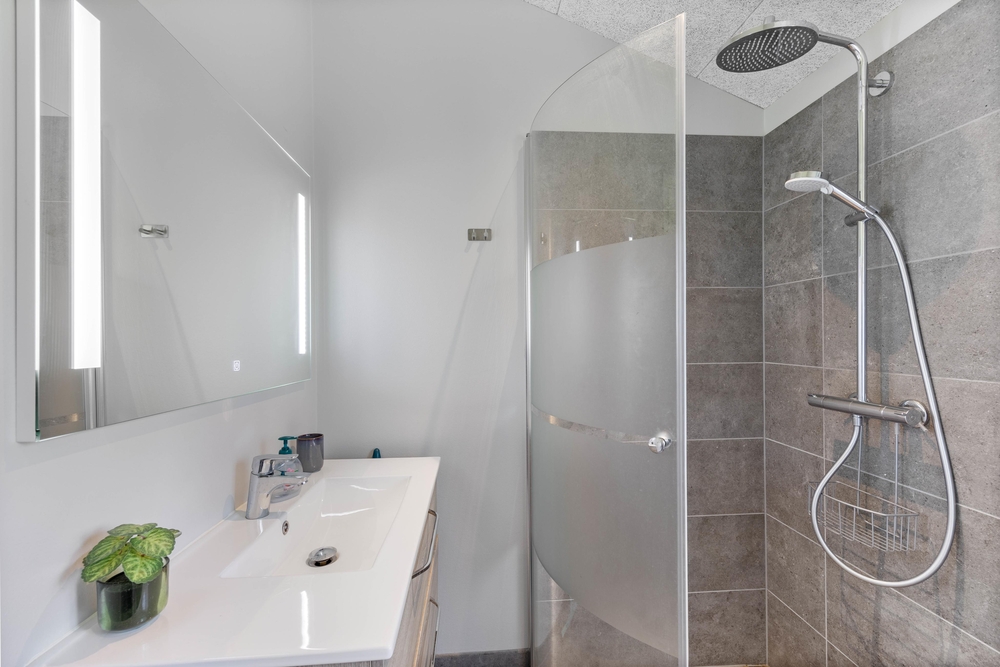 Die zwei extravaganten Badezimmer verfügen beide über einen großen Duschbereich und sind mit einer Fußbodenheizung ausgestattet.