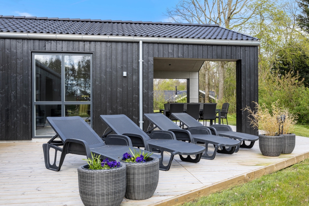 Rund um das Ferienhaus gibt es einige großartige Terrassen, die es einem ermöglichen, die Natur zu genießen ? sei es beim Entspannen im Liegestuhl oder bei gemütlichen Grillabenden. Egal ob Gartenmöbel, Sonnenliegen oder Gasgrill, hier ist alles vorhanden. Die schöne Holzterrasse grenzt direkt an die Rasenfläche, wo die Kinder so richtig toben können. Durch den alten Baumbestand, der das Grundstück umzäunt, habt ihr genügend Möglichkeiten, wenn nötig, einen Schattenplatz zu finden.