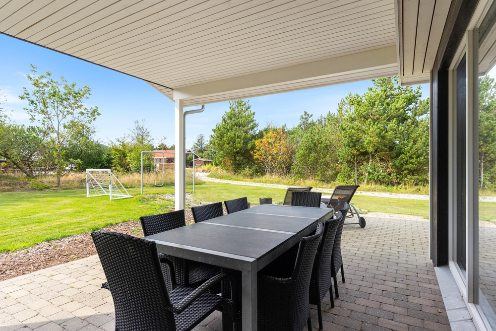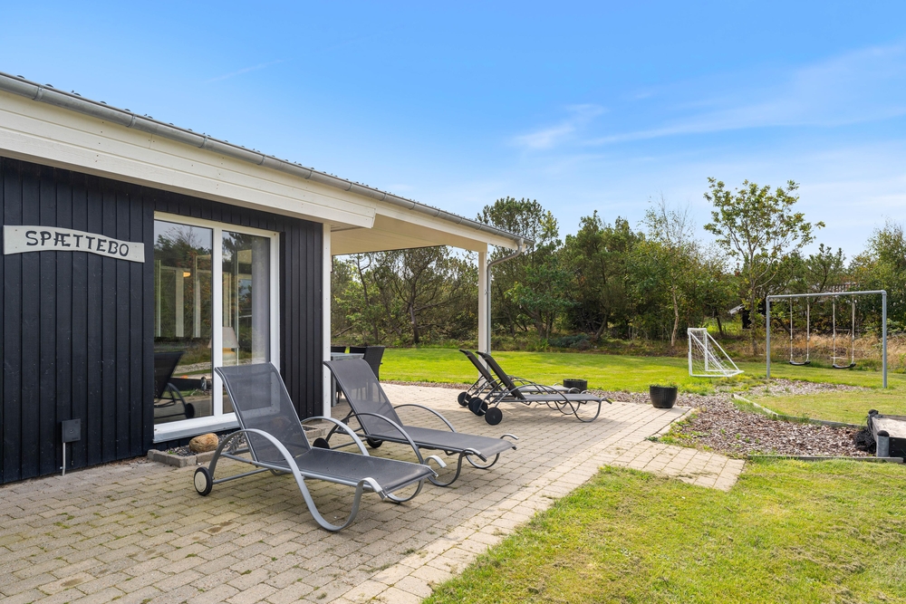 Im Ferienhaus könnt ihr leckere Gerichte auf dem Gasgrill zubereiten und diese mit der Familie oder Freunden auf der gefliesten und offenen Terrassenfläche genießen. Mit Gartenmöbeln, Liegestuhl und Sonnenschirm könnt ihr die langen Sommertage entweder in der Sonne oder im Schatten in vollen Zügen genießen, während eure Kinder eine Runde schaukeln oder im Sandkasten spielen.