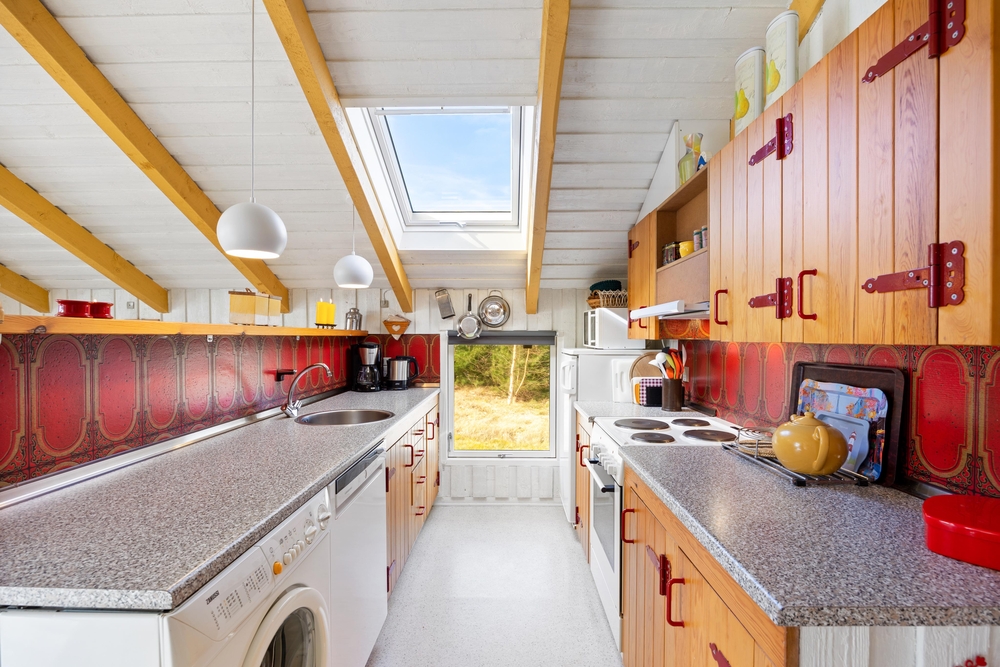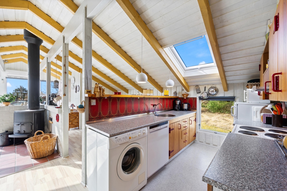 Das charmante Ferienhaus in Lodbjerg Hede gewinnt bereits auf den ersten Blick. Es ist gemütlich und hell eingerichtet und heißt seine Gäste wirklich bestens willkommen. Das Haus verfügt über eine offene Küche mit Essbereich in Verlängerung des Wohnzimmers. Es gibt 2 schöne Sofabereiche, in denen ihr euch wahlweise vor dem Flachbildschirm oder mit einem dicken Buch in der Hand entspannen könnt. Und mit dem knisternden Feuer im Kamin im Hintergrund werdet ihr euch schnell vom Alltag erholen.