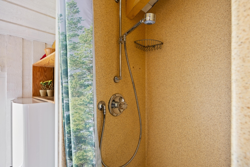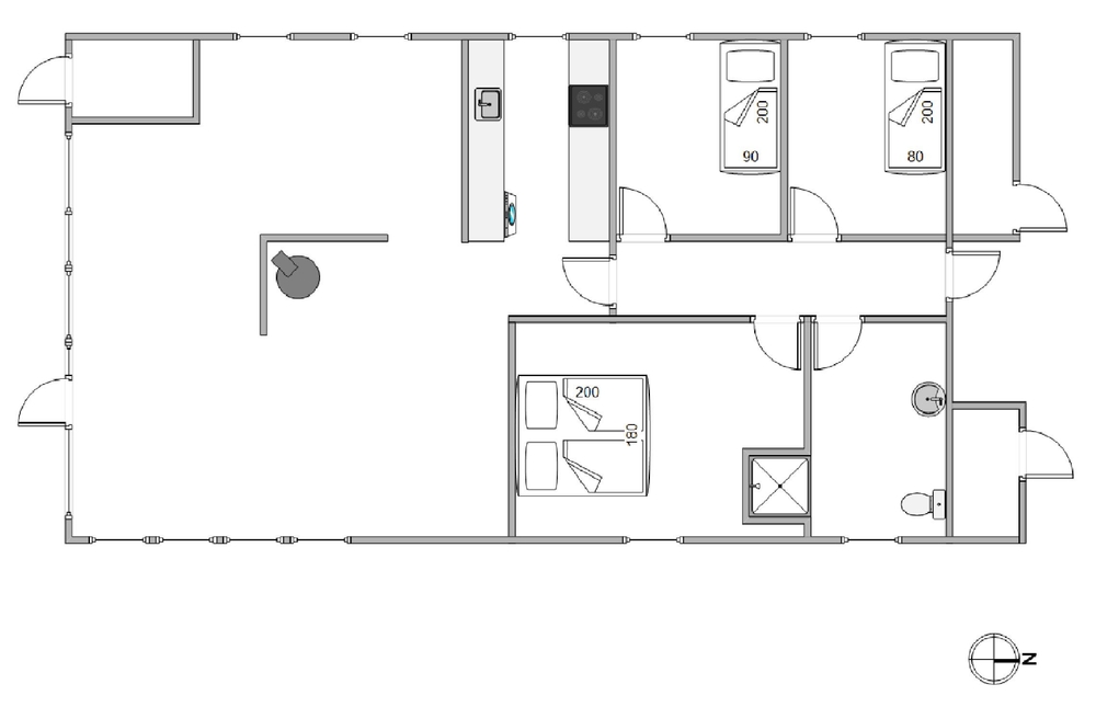 Das Sommerhaus verfügt über 3 Schlafzimmer. 2 dieser Zimmer sind mit einem Einzelbett ausgestattet, während das dritte mit 1 Doppelbett versehen ist. Etwas abgeschirmt, damit man während des Schlafens noch Privatsphäre hat. Es gibt 1 Badezimmer mit Dusche und Waschmaschine. Darüber hinaus kann das Ferienhaus mittels einer modernen Wärmepumpe schnell und kostengünstig beheizt werden.