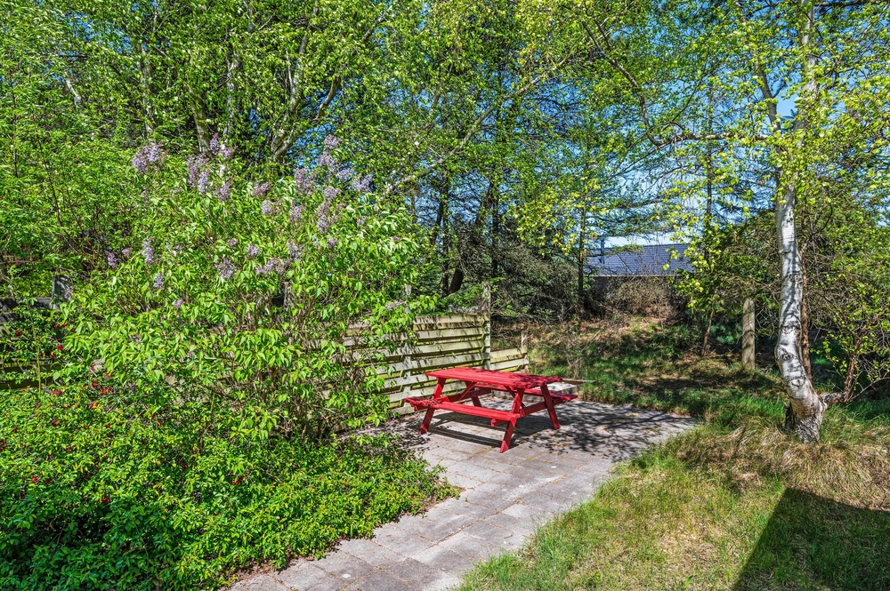 Von der Terrasse aus habt ihr einen herrlichen Blick in die grüne Natur von Lodbjerg Hede. Von eurer Ferienadresse im Hybenvej 64 lassen sich wunderbare Spaziergänge durch die Natur unternehmen.