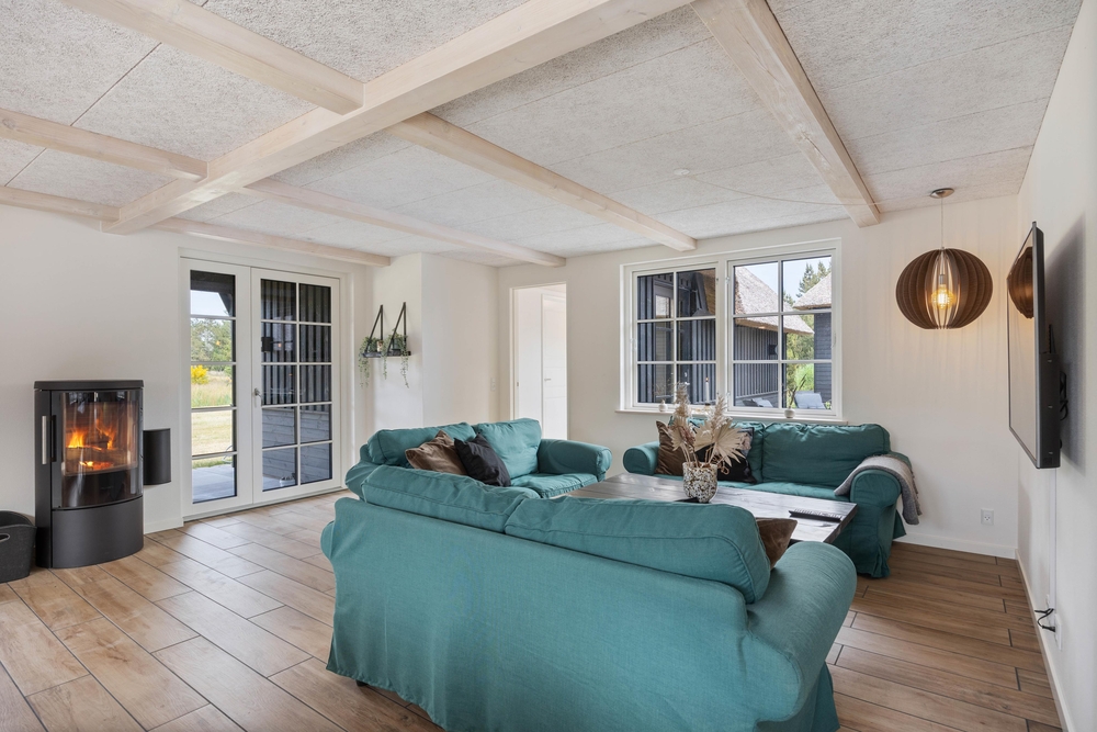 Dieses Ferienhaus begrüßt euch lichtdurchflutet und mit einer einzigartigen Wohnatmosphäre. Die sehr gut ausgestattete offene Küche lässt das gemeinsame Zubereiten eurer Köstlichkeiten zum Erlebnis werden. Mit vielen Lagermöglichkeiten, auch durch die großzügige Kühl- und Gefrierkombination, lässt sie keine Wünsche offen. Im großen, offenen Wohn- und Essbereich werdet ihr euch direkt wohlfühlen. Ob tolle Gespräche vor dem knisternden Kamin, spannende Spieleabende am großen Esstisch oder spannende Filmabende auf dem großen Flachbildfernseher, alles ist in diesem Ferienhaus ein Genuss.