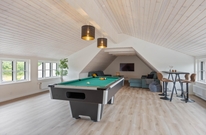 Die 9 Schlafzimmer im Haus und die 4 Badezimmer lassen den Aufenthalt auch für große Gruppen nicht beengt wirken und die vielen Möglichkeiten in diesem Ferienhaus lassen keine Langeweile aufkommen. Ihr könnt im Aktivitätenraum den Billard- und Tischtennismeister küren oder euch in der Sauna bestens entspannen, während sich der Rest im fantastisch angelegten Außenbereich des Ferienhauses vergnügt. Die integrierte Wärmepumpe sorgt zusätzlich für energiesparendes Heizen.