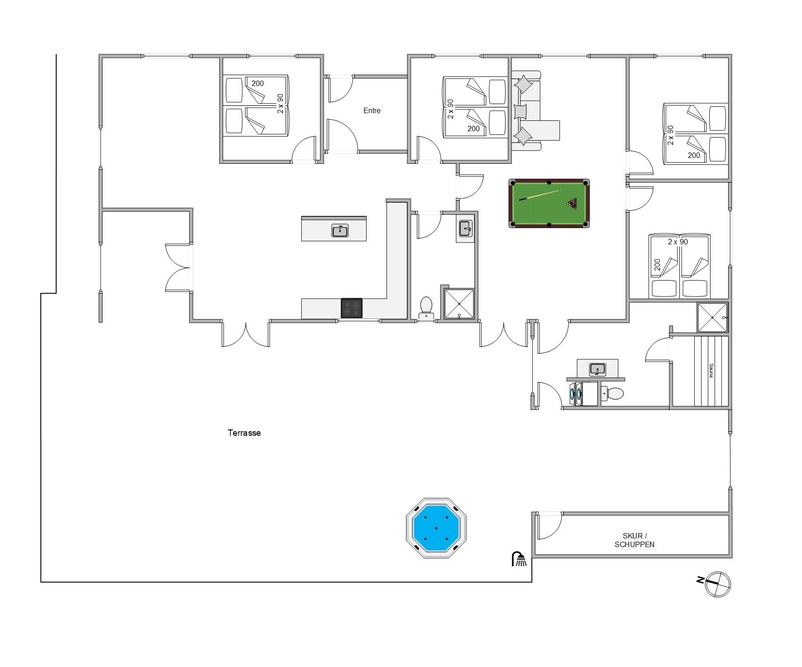 Seid ihr auf der Suche nach dem perfekten Ferienhaus für den nächsten Urlaub mit der ganzen Familie oder den Freunden? Dann lohnt es sich dieses Aktivitätssommerhaus auf Rømø genauner unter die Lupe zu nehmen. Das Sommerhaus bietet Platz für 10 Feriengäste und 2 Hunde, und es gibt tolle Einrichtungen sowohl drinnen als auch draußen. Im Aktivitätsraum könnt ihr eine Partie Billard spielen, während die anderen die Wärme in der Sauna genießen. Draußen gibt es auch reichlich Gelegenheit, sich in dem Outdoorwhirlpool zu entspannen.