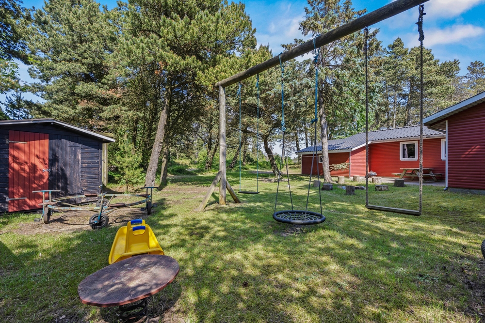 Besonders für die kleinen Gäste wird die Umgebung dieses Ferienhauses ein Hit sein! Hier gibt es jede Menge Outdoor-Vergnügen mit Schaukel, Sandkasten, Spielturm und Trampolin. Es gibt so viel Platz zum Spielen, Springen und Ballspielen. Ein Teil des Grundstückes wurde mit Rasen angelegt und 2 Fußballtoren versehen.