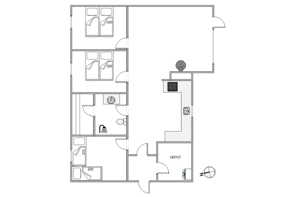 Das Ferienhaus hat insgesamt drei Schlafzimmer, zwei davon mit Doppelbetten und ein Zimmer mit zwei Einzelbetten. Ungestörter Schlaf ist in der ruhigen Lage von Eurem Ferienhaus garantiert.