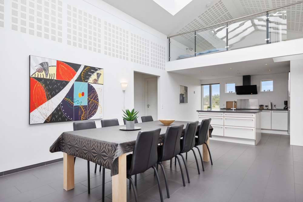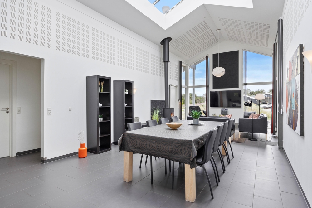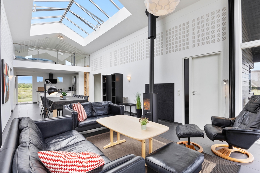 Lehnt euch zurück und genießt den Urlaub in diesem charmanten Ferienhaus, wo der Rahmen für das gewisse Etwas geschaffen wurde. Es wurde an alle Details gedacht und nur hochwertige Materialien verbaut. Das Herz dieses Ferienhauses bildet der Wohnbereich mit integrierter Küche und ist somit perfekt für gemeinsame Stunden geeignet. Gleichzeitig ist Platz und Luft für eine große Familie vorhanden. Das große Oberlicht und die hohen Decken schaffen eine ganz besondere Atmospäre.