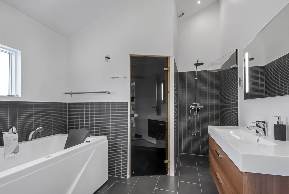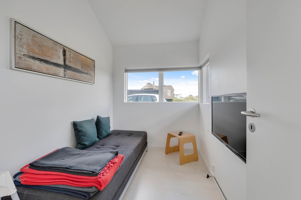 Es verfügt über 3 schöne, helle Schlafzimmer und einen großen Schlafboden (Hems) mit extra TV und ist daher gut für etwas größere Kinder geeignet. Das große Badezimmer ist euer persönlicher kleiner Wellness-Tempel, mit beleuchtetem Whirlpool, und Sauna, wo ihr ganz entspannt dem Alltag entfliehen könnt. Insgesamt gibt es 3 Fernseher im Ferienhaus, wovon alle mit einem Chromecast ausgestattet sind, über den ihr eure Lieblingserie streamen könnt. Der Fernseher im Wohnzimmer ist an die Satellitenschüssel angeschlossen.