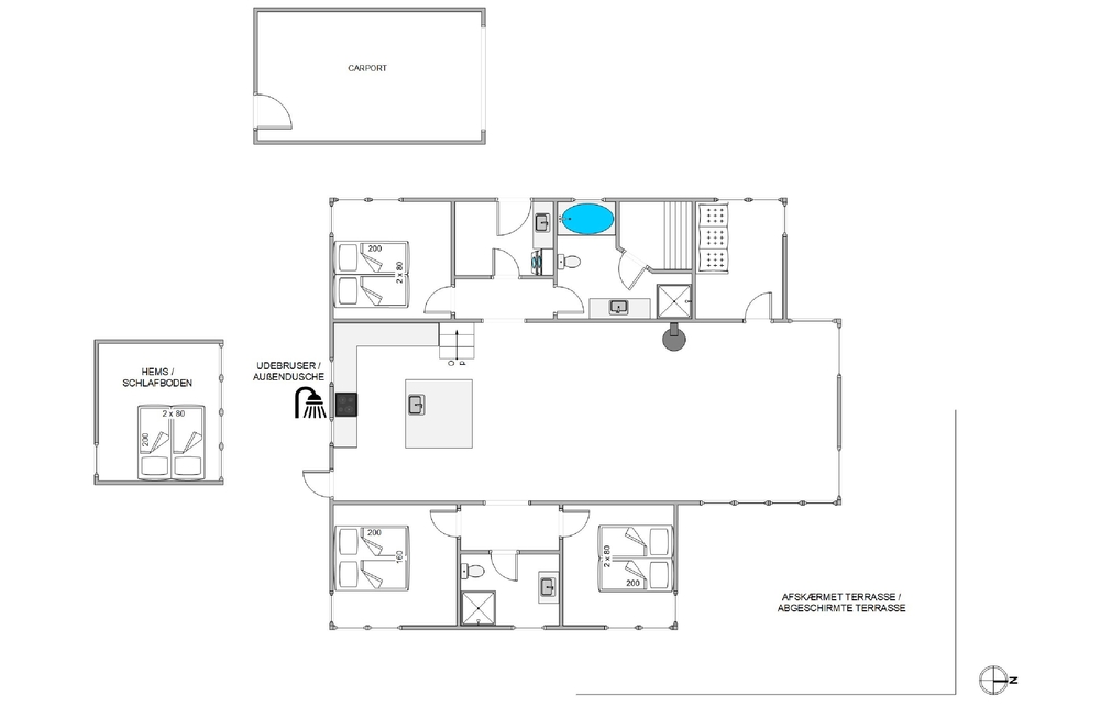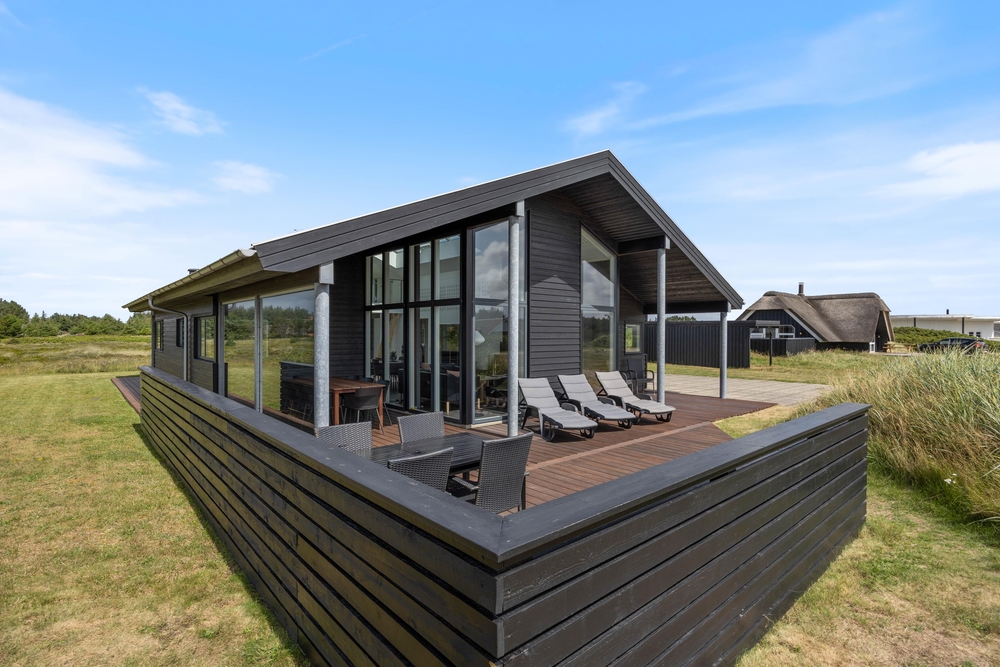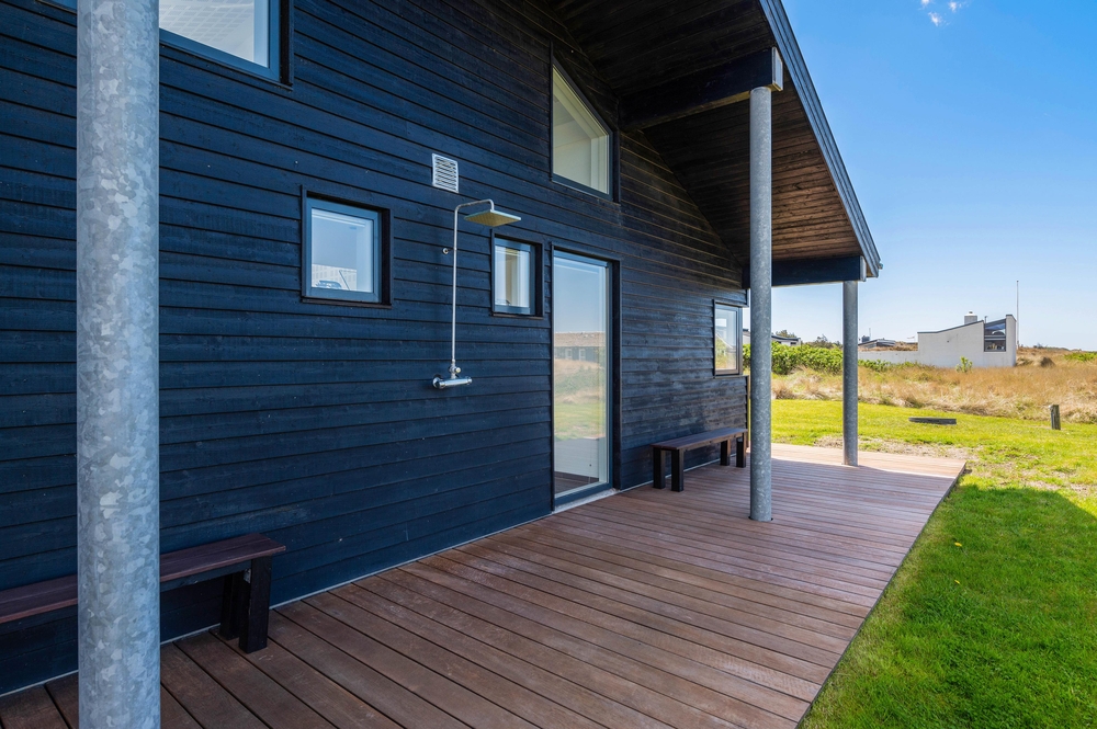 Schickes, strandnahes Ferienhaus mit Whirlpool, Sauna und Außendusche für Wellnessfeeling ? plus Carport für das Auto und die Fahrräder ? hier wurde an alle Details gedacht. Dieses Ferienhaus im Jakob Bondes Vej 22 ist sehr gut eingerichtet, hat große helle Räume ? u.a. hat der Aufenthaltsraum ein fantastisches Oberlicht ? somit viel Platz für bis zu 8 Personen, um schöne, gemeinsame Stunden miteinander zu verbringen. Es ist von Terrassen umgeben ? im Südwesten ist die Terrasse teilweise überdacht und abgeschirmt, sodass ihr euch auch draußen wunderbar entfalten könnt. Am Ferienhaus gibt es einen E-Auto Ladeanschluss, damit ihr euer E-Auto mit eurem eigenen Ladekabel/Adapter laden könnt.