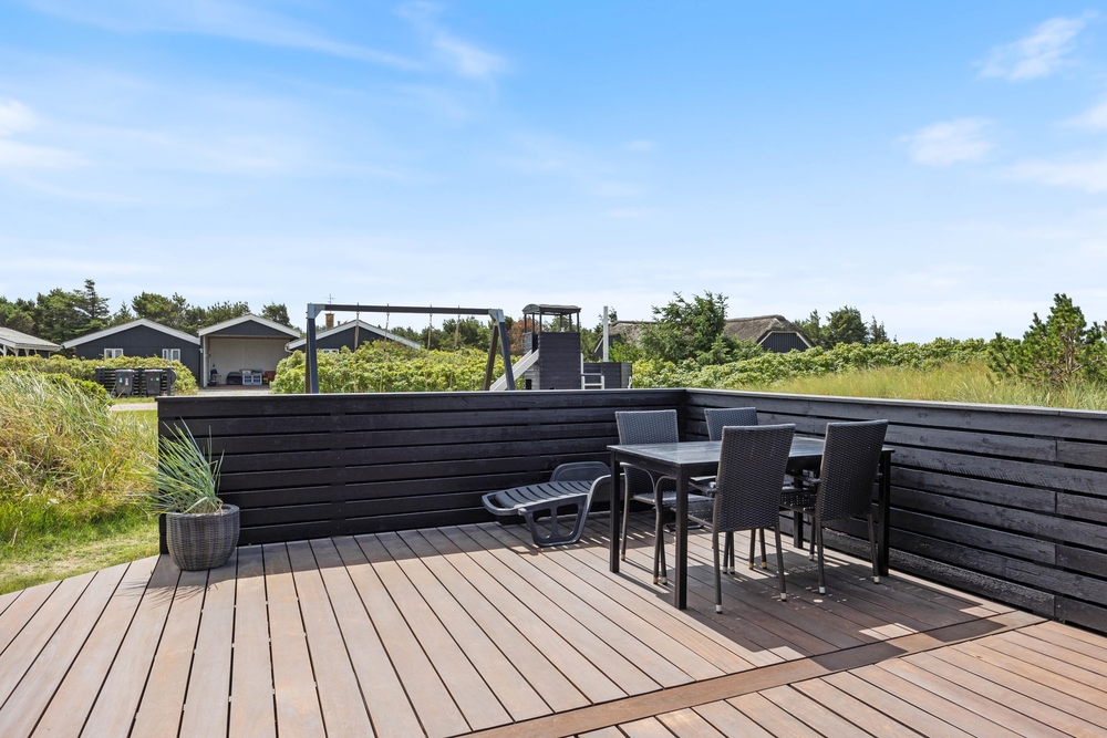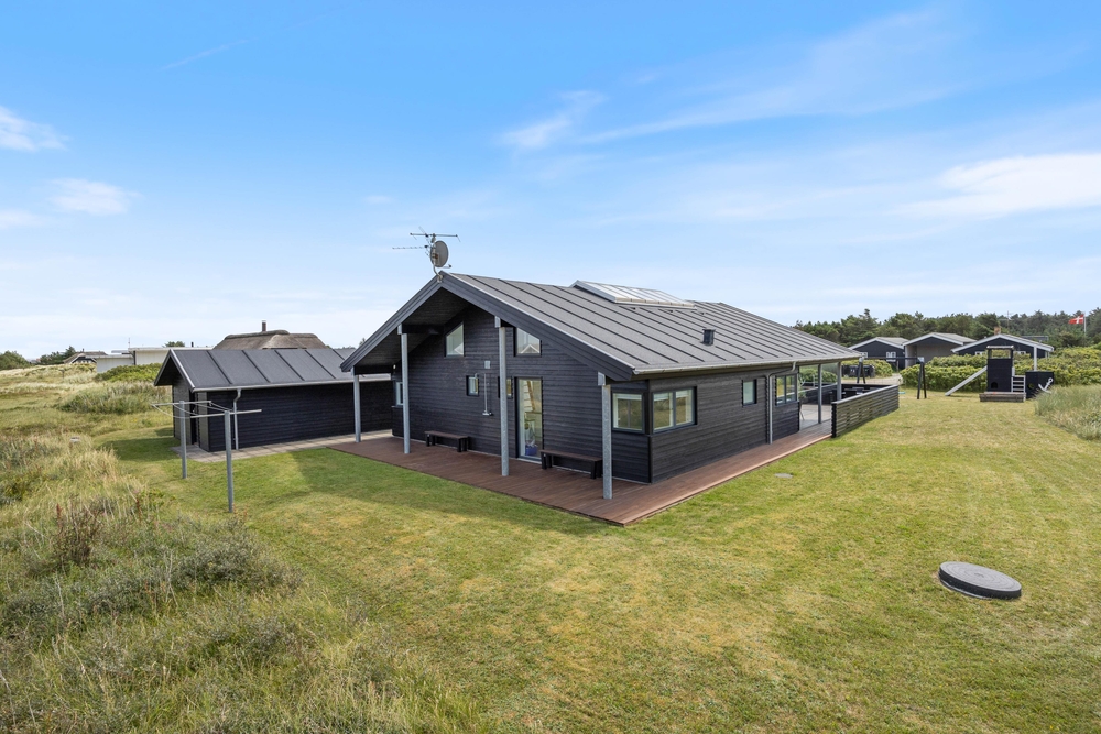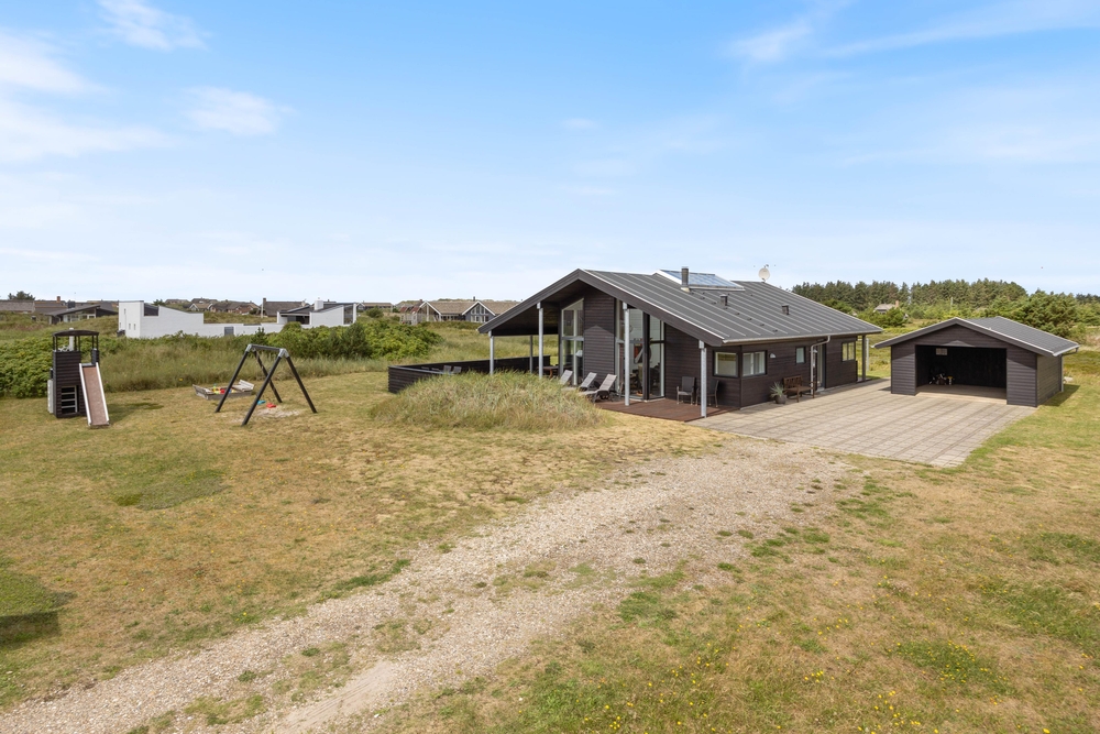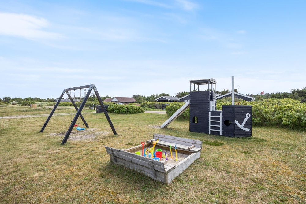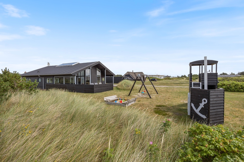 Das Ferienhaus im Jakob Bondes Vej 22 in Søndervig liegt auf einem großen Grundstück, welches an ein geschütztes Naturgebiet grenzt. Auf dem Grundstück ist viel Platz zum Spielen und natürlich sind Schaukel, Sandkasten und Kletterturm für die Kinder vorhanden.