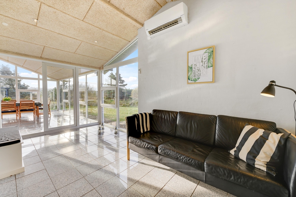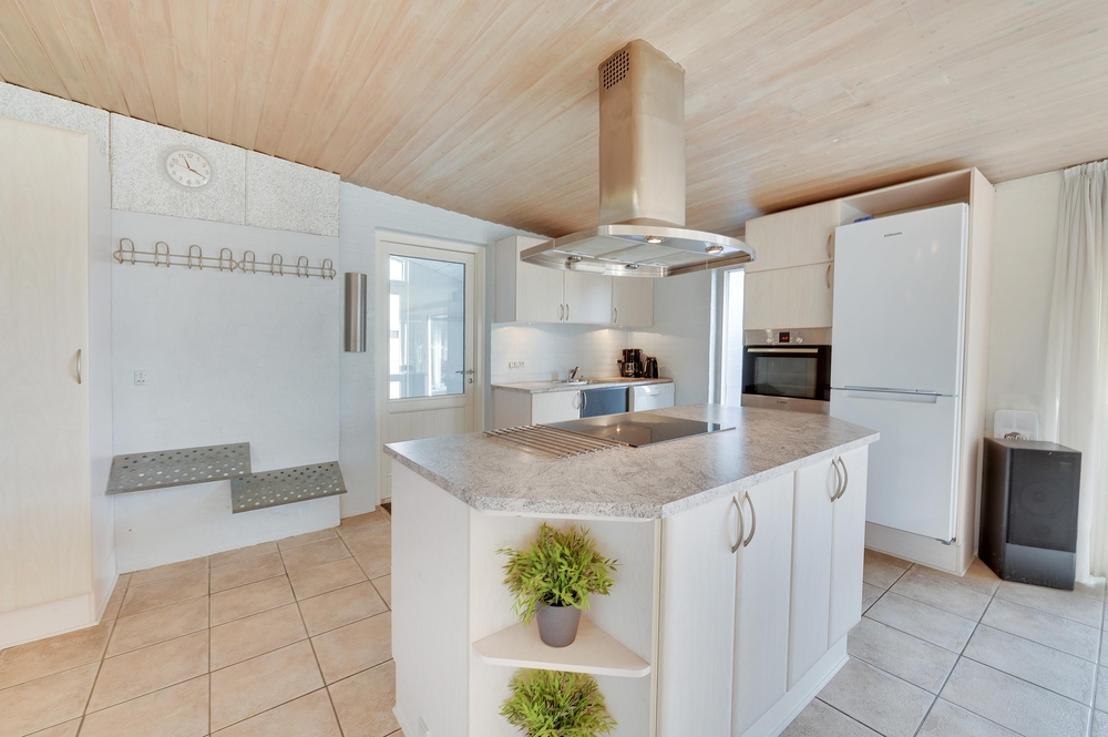 Dieses Ferienhaus ist gepflegt, gemütlich und so eingerichtet, dass für alle Platz ist. Im offenen Wohn ? und Essbereich befindet sich eine Sofalandschaft, auf der ihr es euch gemütlich machen könnt, um zum Beispiel gemeinsam Fernsehen zu schauen, während an kalten Tagen der Kamin knistert. Hier steht auch der große Esstisch, an dem ihr nicht nur gemeinsam Essen könnt, sondern auch die Aktivitäten für den nächsten Urlaubstag planen könnt oder einen lustigen Spieleabend veranstaltet. Die moderne und offene Küche grenzt an den Wohn ? und Essbereich und gibt euch die Möglichkeit während des Kochens am Geschehen teilzunehmen. Dank der praktischen Kücheninsel habt ihr genügend Platz, um auch zusammen kochen zu können. Der Geschirrspüler erleichtert euch das Saubermachen nach euren gemeinsamen Essen. Hinter der Küche gibt es noch einen kleinen Raum, indem sich die Waschmaschine und der Trockner befinden. Wenn ihr nach einem ereignisreichen Urlaubstag zur Ruhe kommen möchtet, könnt ihr euch in einem der 5 Schlafzimmer zurückziehen, euch in das Doppelbett kuscheln, ein gutes Buch lesen oder einfach die Augen schließen und träumen. Damit morgens keine Warteschlangen vorm Bad entstehen, gibt es gleich 3 Badezimmer mit Dusche und Toilette. Die moderne und energiesparende Luft-zu-Luft-Wärmepumpe sorgt das ganze Jahr über für angenehme Temperaturen. Außerdem habt ihr Zugang zu gratis Internet. Der angrenzende große und helle Wintergarten ist so ausgestattet, dass ihr auch hier gemeinsam schöne Stunden verbringen könnt. Hier wird es besonders an kühleren Tagen ?hyggelig?. Es wurde sogar an einen weiteren Kamin gedacht.s mit Wellnessbereich