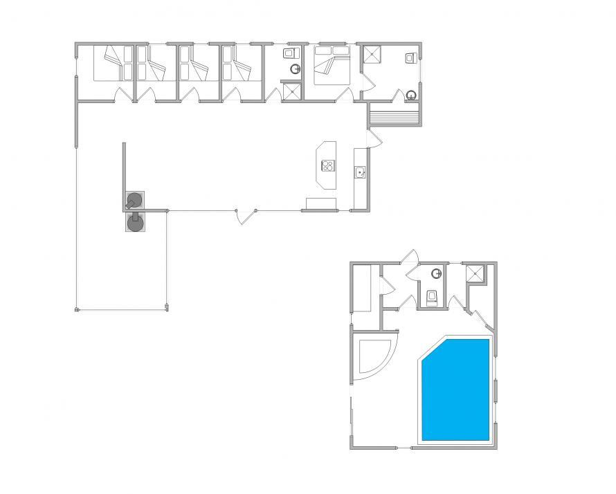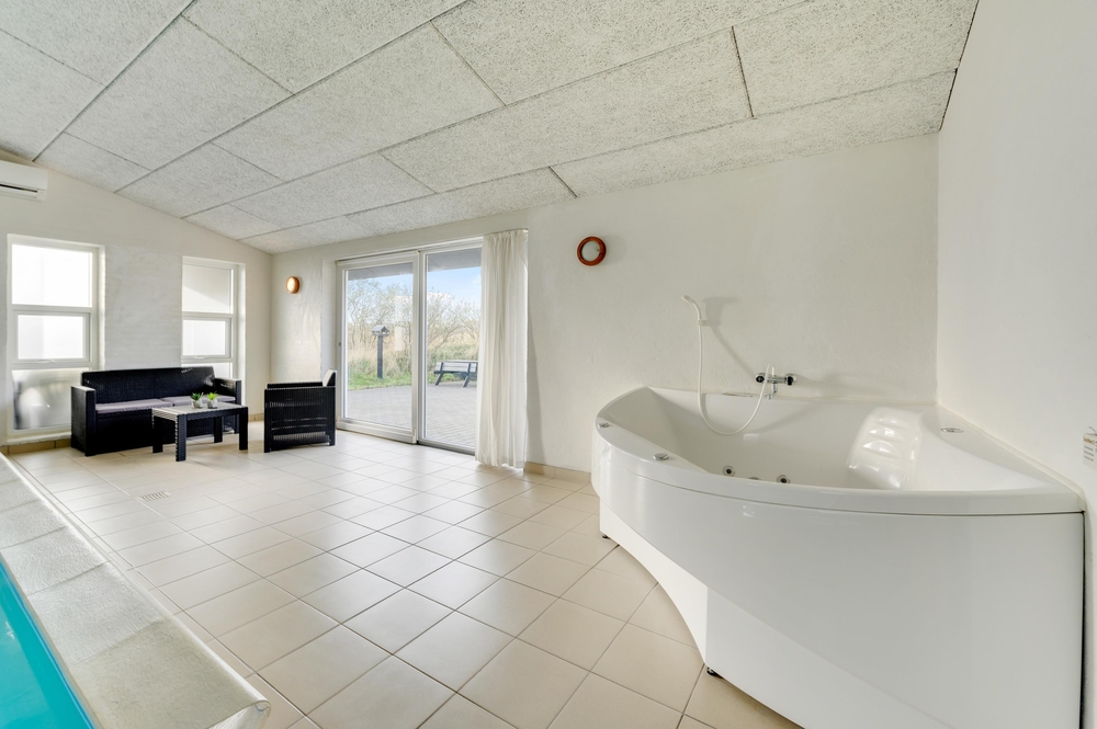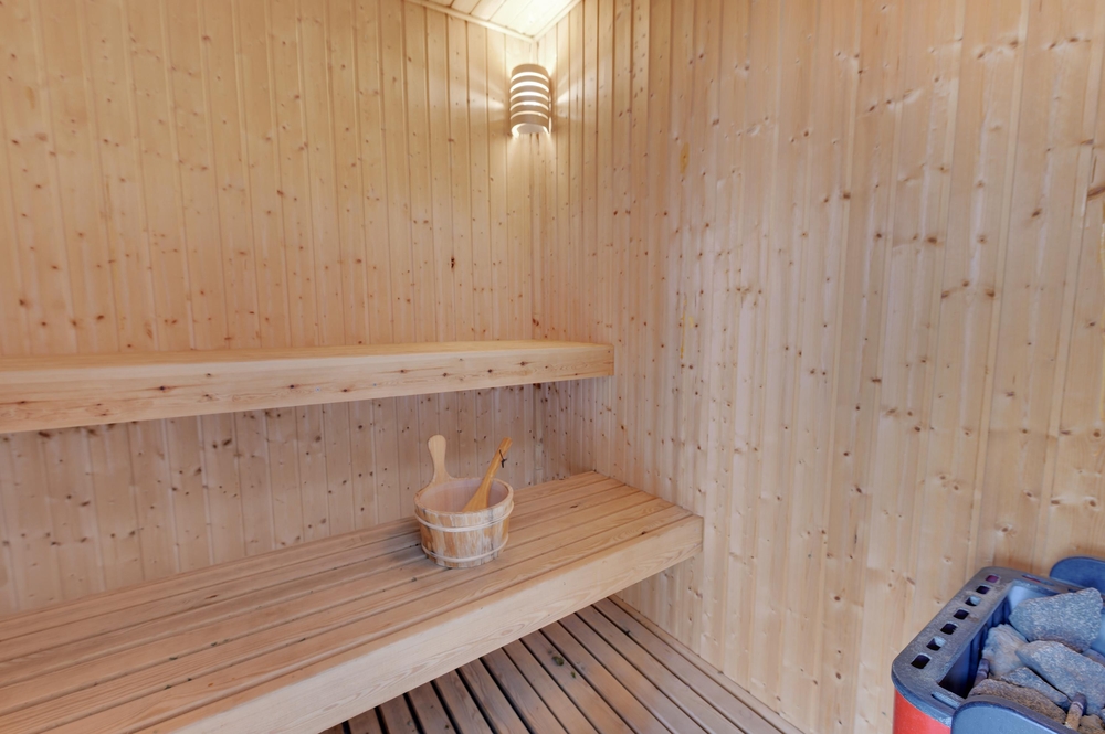 Eigenes Poolhau ein 24m2 großer Pool und ein Wellnessbereich mit Whirlpool und Sauna. Hier können sich sowohl Kinder als auch Erwachsene den ganzen Tag beschäftigen. Es gibt zudem einen kleinen Aufenthaltsbereich, eine separate Dusche und Toilette.