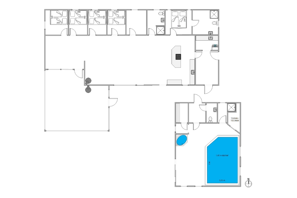 Wenn ihr ein großes Ferienhaus, mit viel Platz sucht, dann seid ihr hier im Jakob Bondes Vej 69 genau richtig. Auf 227 m2 Wohnfläche könnt ihr mit bis zu 10 Personen einen schönen Urlaub zwischen Meer und Fjord verbringen. Auch euer Haustier ist herzlich willkommen. Ein Highlight ist das separate Poolhaus mit dem großen Pool und dem Wellnessbereich, das garantiert für viel Spaß und Erholung sorgt. Hier ist für jeden etwas dabei, auch für die kleinen Urlauber.