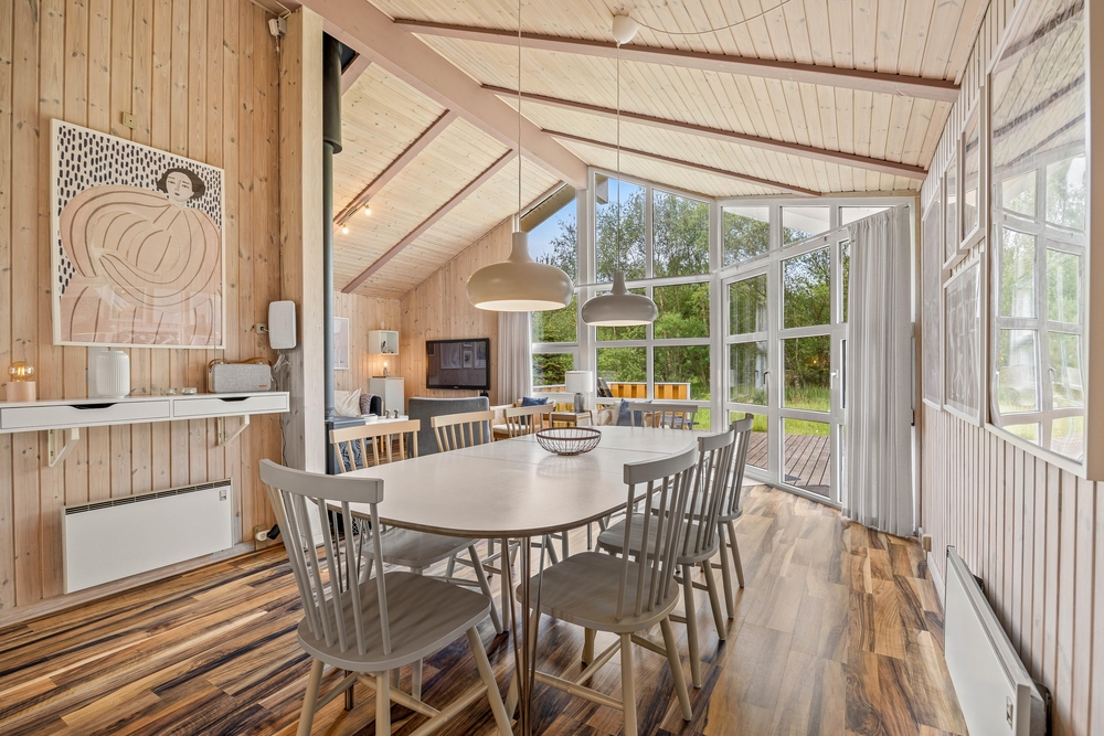 Der Innenbereich des Ferienhauses in Sønderho ist einladend gestaltet und bietet euch vielfältige Möglichkeiten zur Erholung. Im offenen Wohnbereich sorgt der Kaminofen für wohlige Gemütlichkeit, während ihr auf dem Sofa entspannt und einen Film schaut. Eine energiesparende Wärmepumpe stellt sicher, dass die Temperatur im gesamten Ferienhaus stets angenehm bleibt. Die moderne, offene Küche mit Geschirrspüler ist voll ausgestattet und ermöglicht euch, mühelos köstliche Mahlzeiten zuzubereiten.