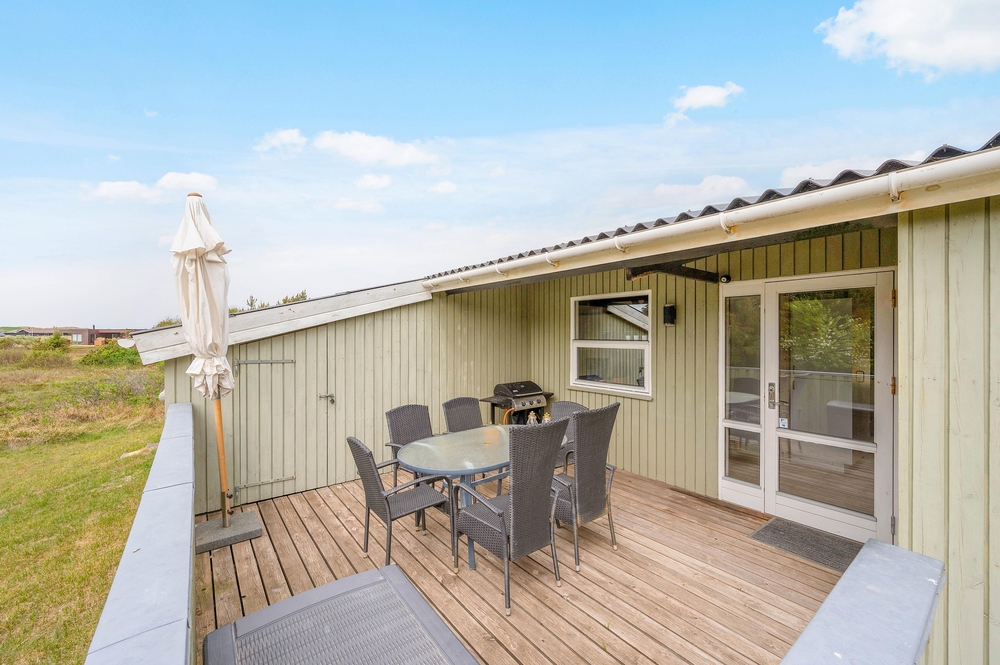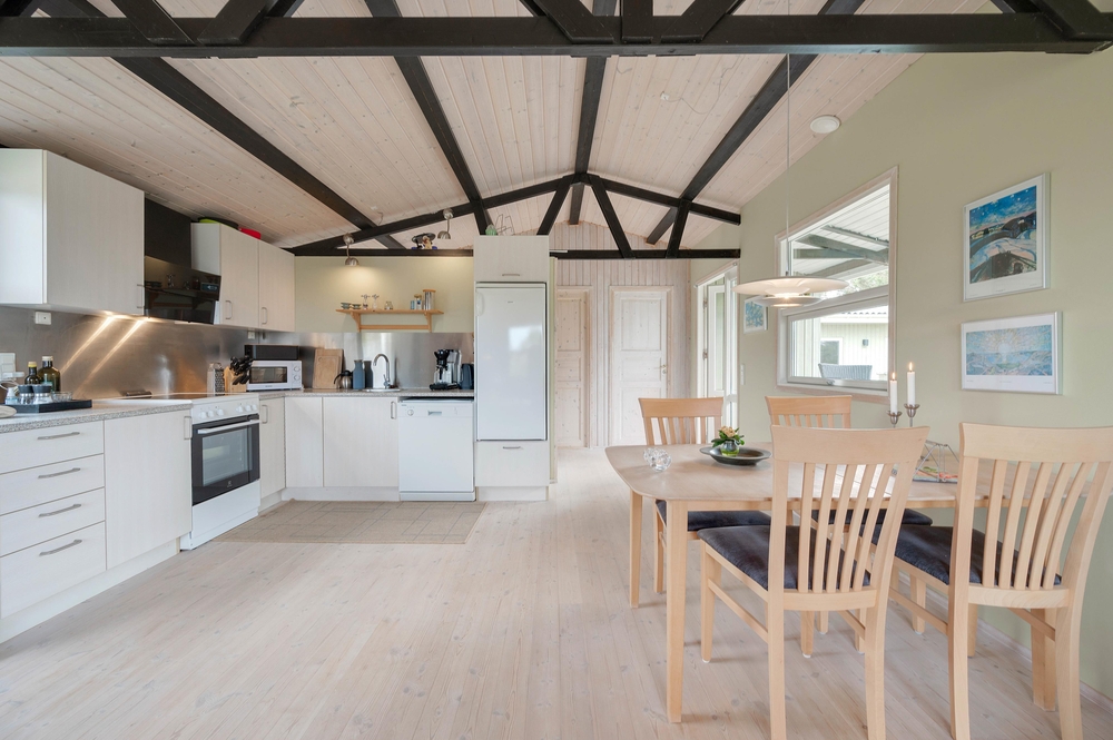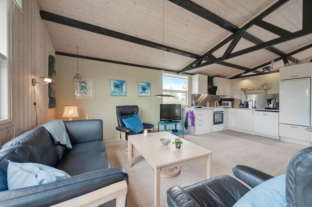 In dem gemütlichen Ferienhaus finden bis zu fünf Personen Platz. Das Ferienhaus in Søndervig empfängt euch mit einer hellen und freundlichen Einrichtung. Eine gut ausgestattete Küche mit Spülmaschine macht die Zubereitung köstlicher Mahlzeiten zum Kinderspiel. Das offene Wohn-Ess-Zimmer sorgt mit einer modernen Wärmepumpe für eine angenehme Wohlfühlatmosphäre.