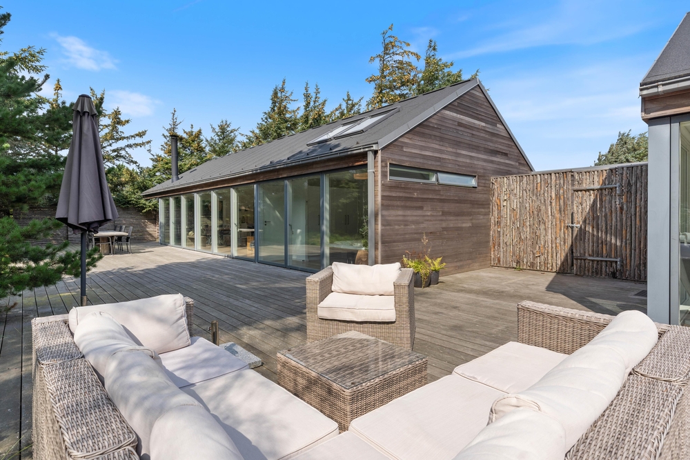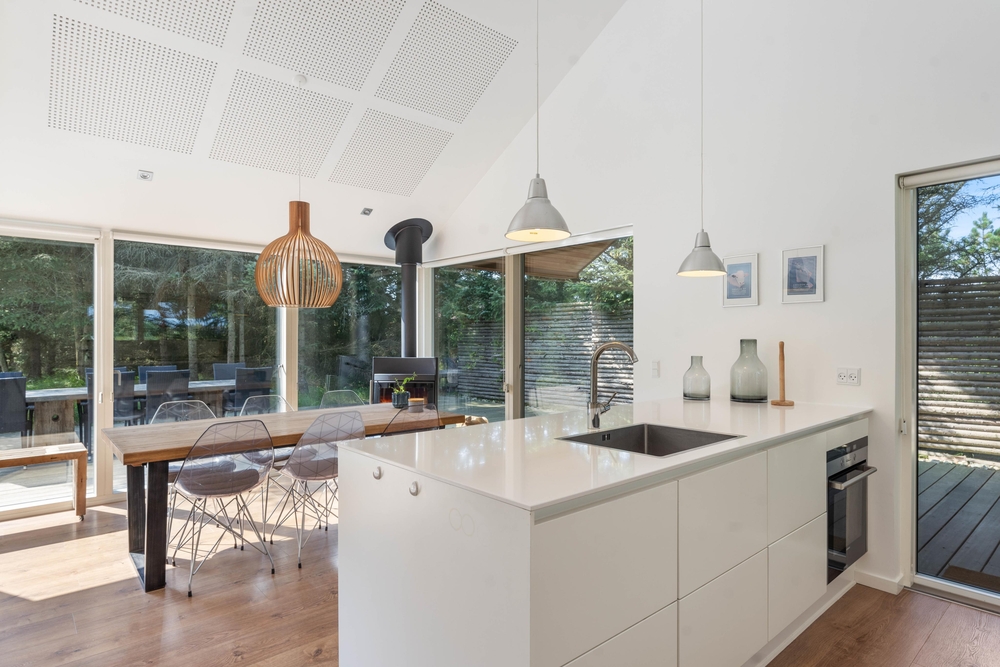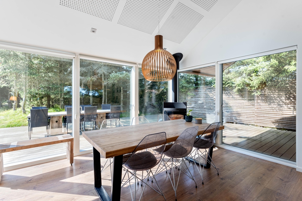 In diesem Ferienhaus wohnt ihr in einem äußerst geschmackvollen Ferienhaus nicht weit von Søndervig. Es gibt viele schöne und spannende Details, sowohl innen als auch außen. Innen erlebt ihr ein unglaublich helles und geschmackvoll eingerichtetes Ferienhaus. Bei der Auswahl der Möbel und anderer Einrichtungsgegenstände wurde viel Wert auf Details gelegt. Mehrere Zimmer verfügen über große Fenster und sogar Oberlichter, die für einen fantastischen Lichteinfall sorgen.