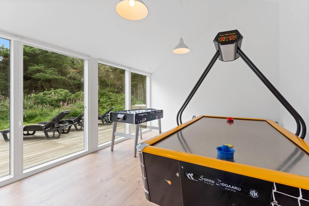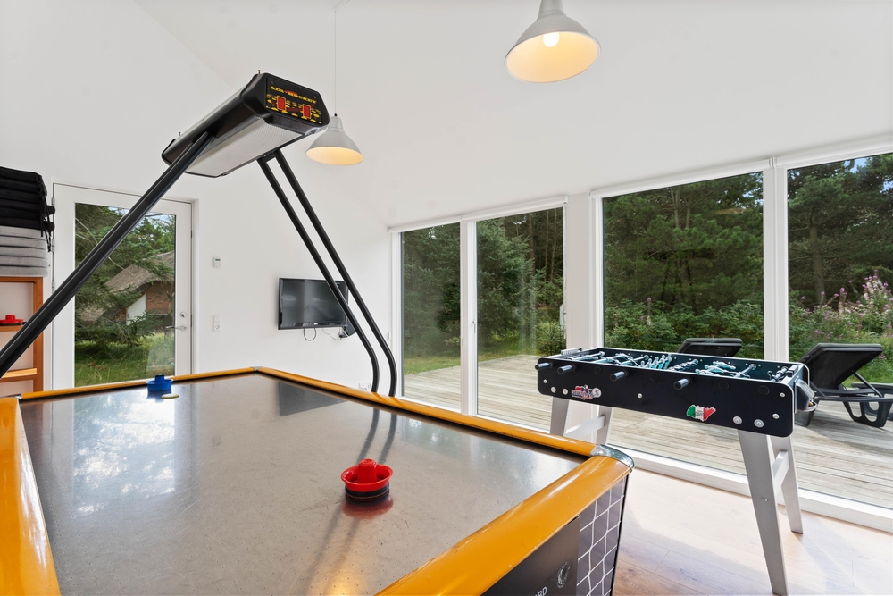Im östlichen Teil des Ferienhauses gibt es einen Aktivitätsraum, in dem die ganze Familie miteinander Spaß haben kann. Wenn ihr eure Spielekonsole mitbringt, dann findet ihr einen zusätzlichen Fernseher im Aktivitätsraum, um diese anzuschließen. Außerdem könnt ihr im Aktivitätsraum auch den Airhockey oder Tischkickermeister des Urlaubs krönen.