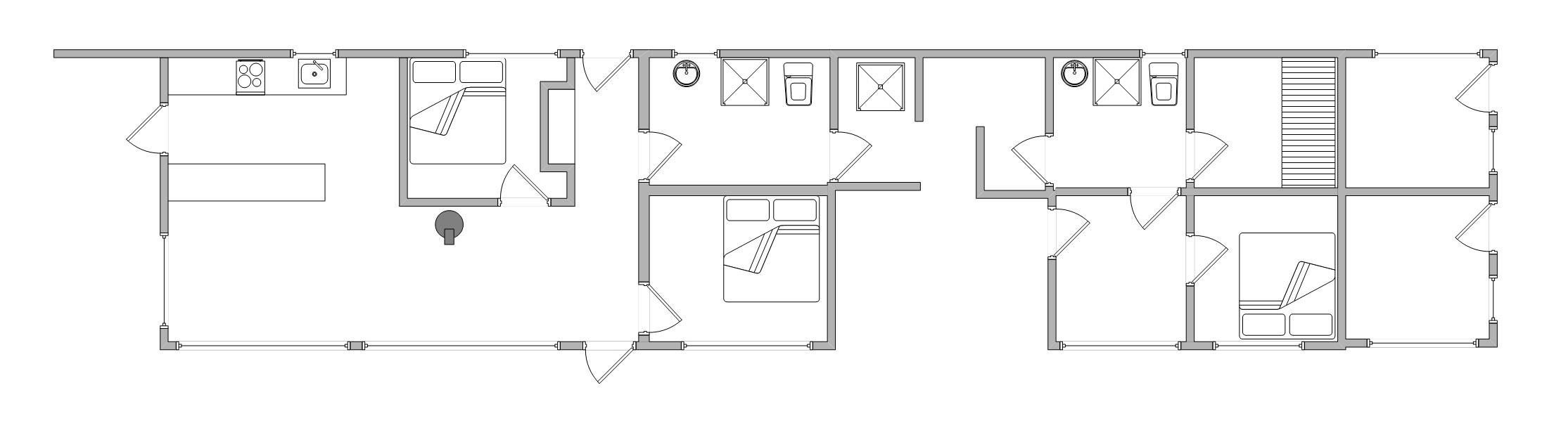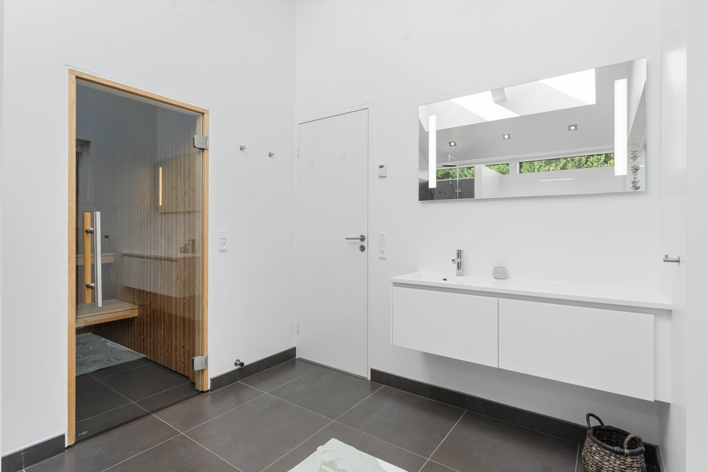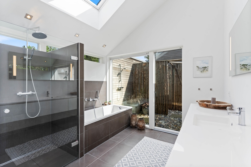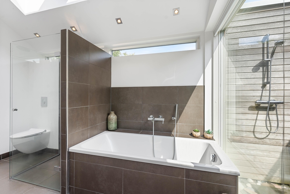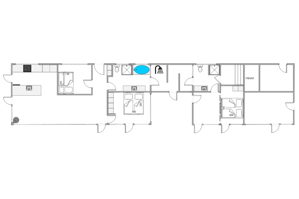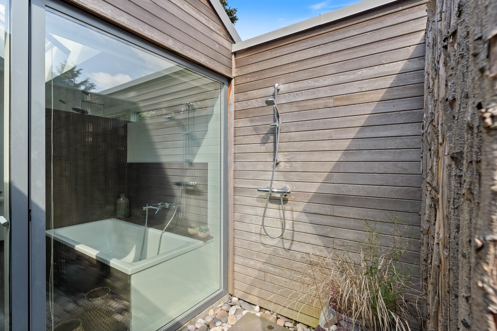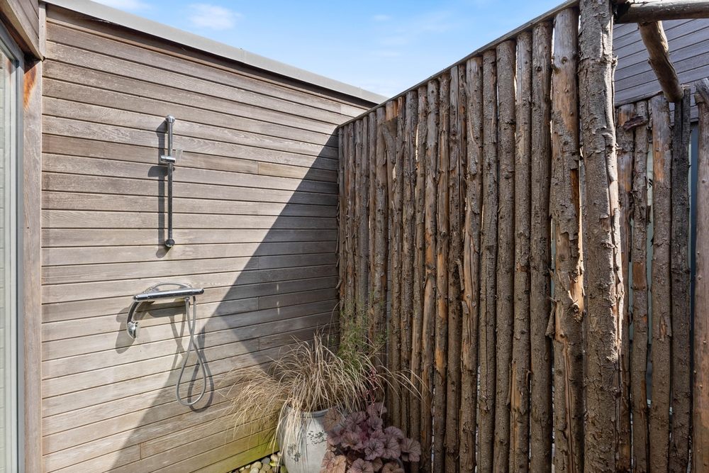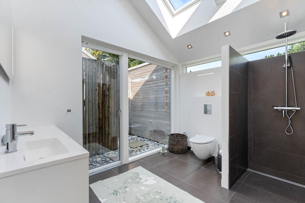 Das Ferienhaus ist mit 2 Badezimmer ausgestattet, sodass das Ferienhaus ideal ist, wenn man mit Freunden reist. In einem der Badezimmer findet ihr eine Sauna, die für entspannende Abende sorgt, während das andere Badezimmer für zusätzliche Entspannung in Form einer schönen Badewanne sorgt. Zwischen den beiden Teilen des Ferienhauses befindet sich ein kleiner Hof mit einer Außendusche. Die Außendusche ist von November bis April nicht verfügbar. Der kleine Hof zwischen den beiden Teilen des Ferienhauses sorgt dafür, dass die beiden Teile des Ferienhauses miteinander verbunden sind.