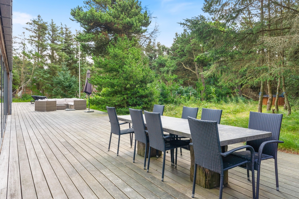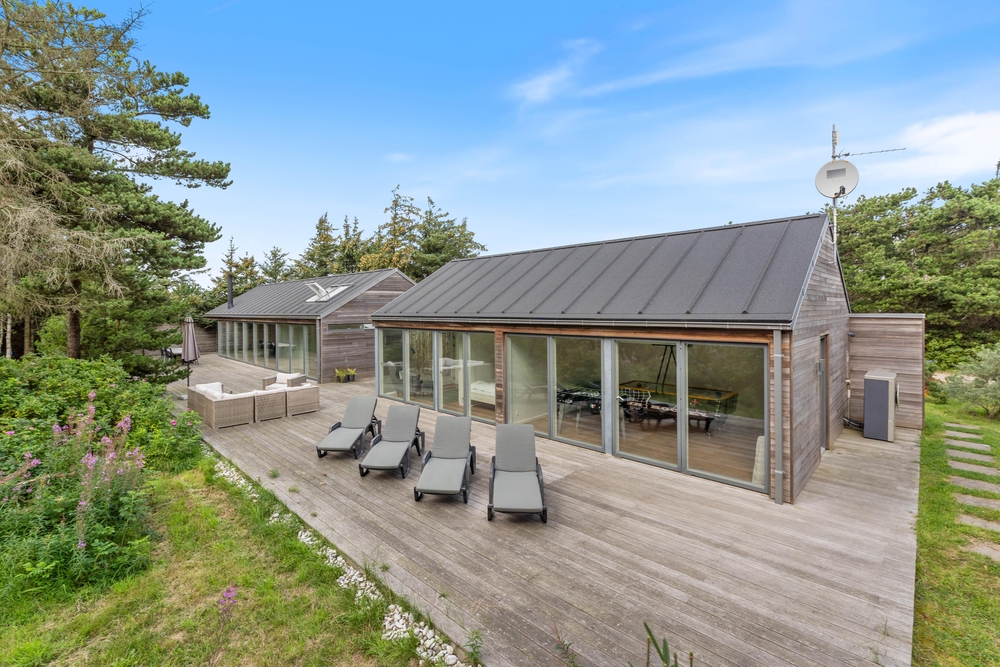Dieses moderne Ferienhaus liegt nicht weit vom Zentrum von Søndervig. Es wurde in 2 Teilen gebaut, dir durch einen kleinen Hof mit Außendusche miteinander verbunden sind, was ideal ist, wenn ihr mit Teenagerne oder mit 2 Paaren anreist. Es befindet sich auf einem ruhigen Naturgrundstück mit viel Schutz durch die umliegenden Bäume. Die Inneneinrichtung ist geschmackvoll und einladend. Des Weiteren ist das Ferienhaus mit einem Aktivitätsraum mit Airhockey und Tischkicker ausgestattet.