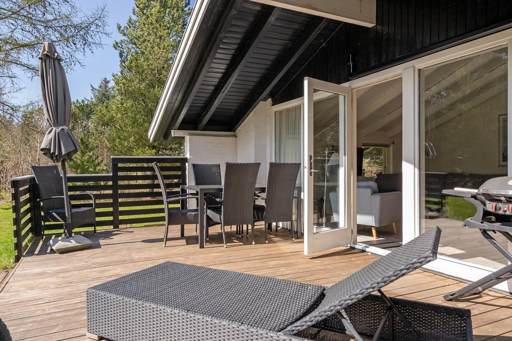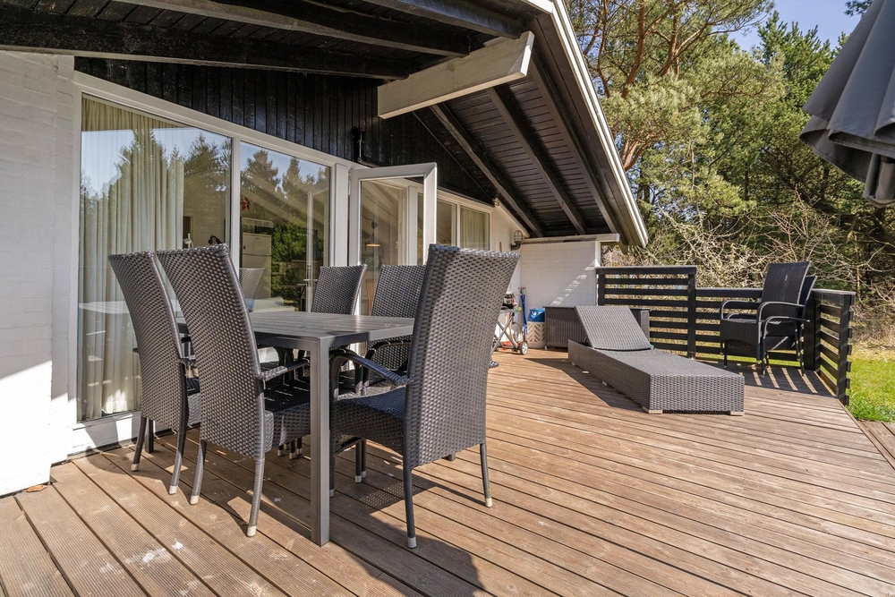 Der Außenbereich eures Ferienhauses im Jeppesvej 10 ist ein echtes Paradies für alle, die die Natur lieben. Umgeben von einem wunderschönen Naturgrundstück, könnt ihr hier die frische Luft und die Ruhe der dänischen Landschaft in vollen Zügen genießen. Die offene Terrasse lädt dazu ein, den Tag entspannt mit einem ausgiebigen Frühstück zu starten, während ihr den sanften Geräuschen der Natur lauscht.