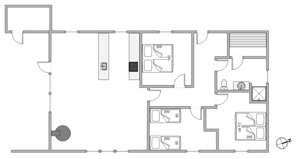 Euer Ferienhaus ist für bis zu 6 Personen eingerichtet und bietet euch drei Schlafzimmer, von den zwei mit Doppelbetten und eins mit zwei Einzelbetten eingerichtet sind. Sämtliche Betten sind mit Federkernmatratzen ausgestattet.