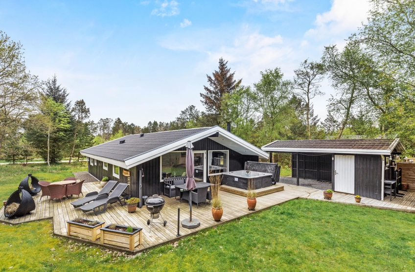 In ruhiger Randlage Houstrups liegt dieses wunderschöne und sehr gepflegte Holzferienhaus ? einfach und dennoch mit einem Hauch von etwas Besonderem. Mitten im Grünen gelegen und nah zur wunderschönen Dünenlandschaft Westjyllands geniesst ihr mit bis zu 6 Personen das Leben Draussen ? z.B. auf den Terrassen oder im Aussenwhirlpool ? ihr werdet es lieben.