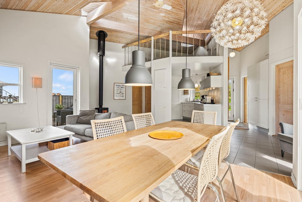 Das Ferienhaus bietet Platz für bis zu 6 Personen und verfügt über 3 Schlafzimmer, die euch und eurer Familie oder Freunden Privatsphäre und Erholung garantieren. Nach einem langen Tag am Strand könnt ihr euch vor dem warmen Kaminofen entspannen, während ihr euren Lieblingsfilm schaut. Der offene Wohnraum dieses Ferienhauses lädt zum geselligen Beisammensein ein. Hier findet ihr eine voll ausgestattete Küche mit Spülmaschine und einem separaten Gefrierschrank, um eure kulinarischen Wünsche zu erfüllen. Der angrenzende Essbereich bietet Platz für ein gemütliches Familientreffen.
