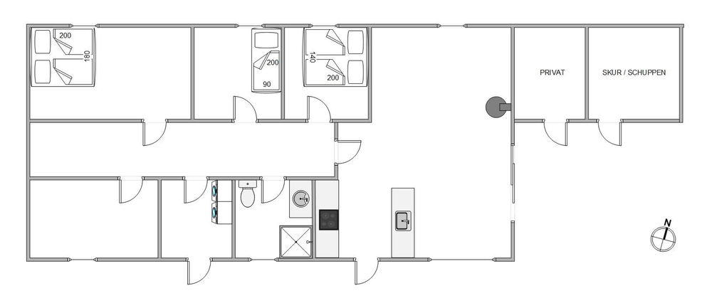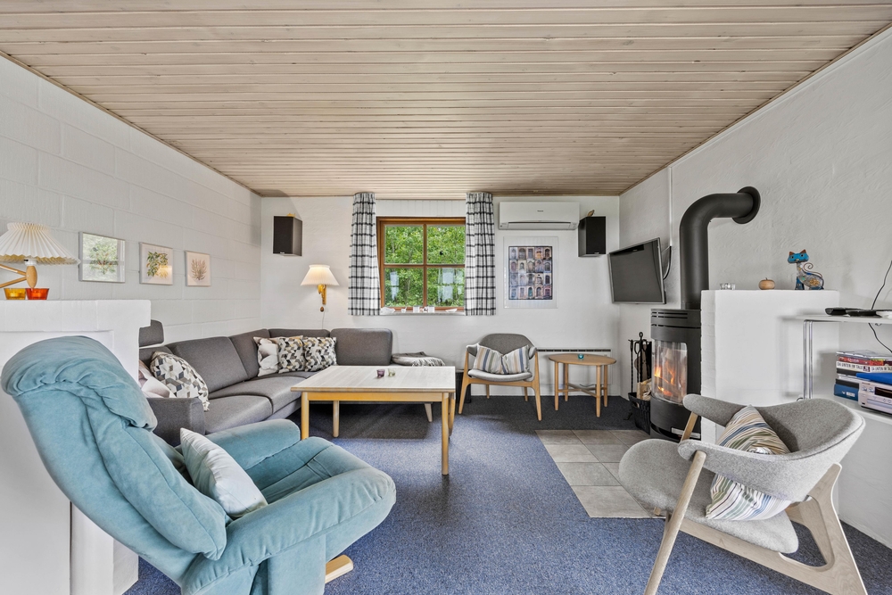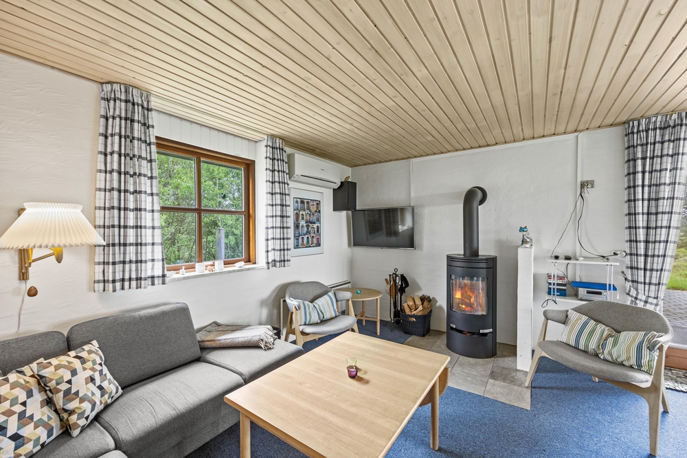 Am Ende einer Sackgasse, versteckt hinter alten Kiefer, findet ihr dieses 109 Quadratmeter große klassische Ferienhaus.Schon beim Betreten des Ferienhauses wird euch das sehr individuelle und klassische Ferienhaus begeistern. Der offene Wohnbereich wirkt durch die großen Fensterfronten hell und freundlich.