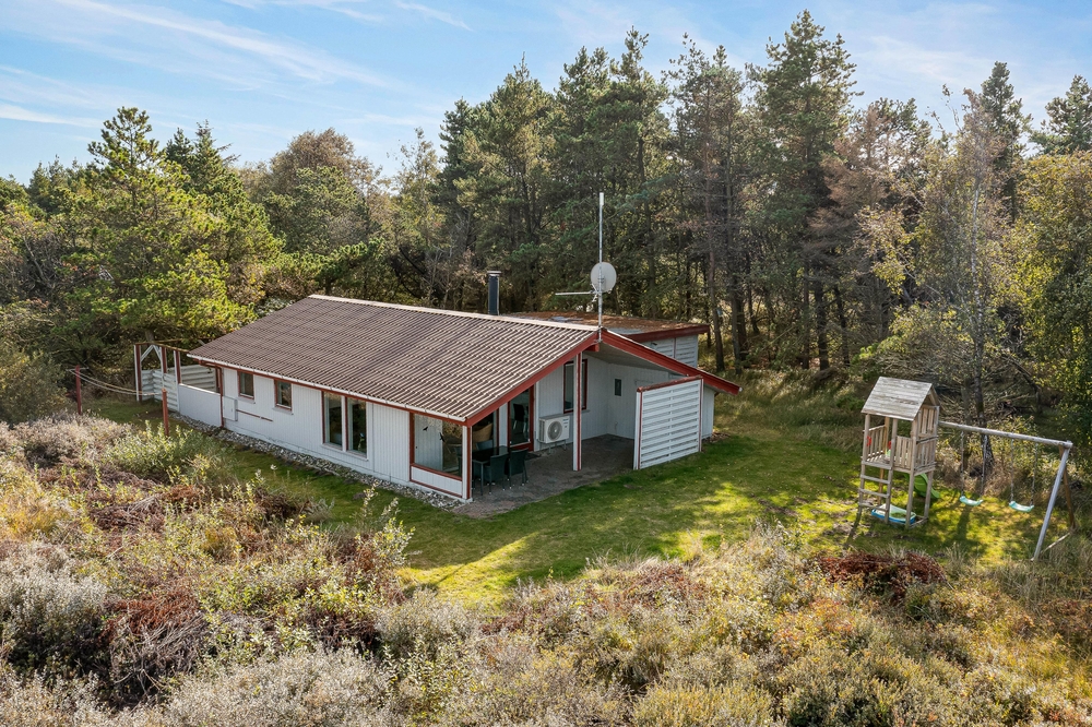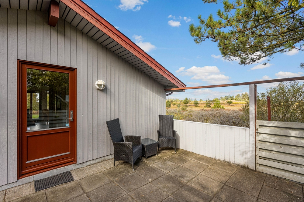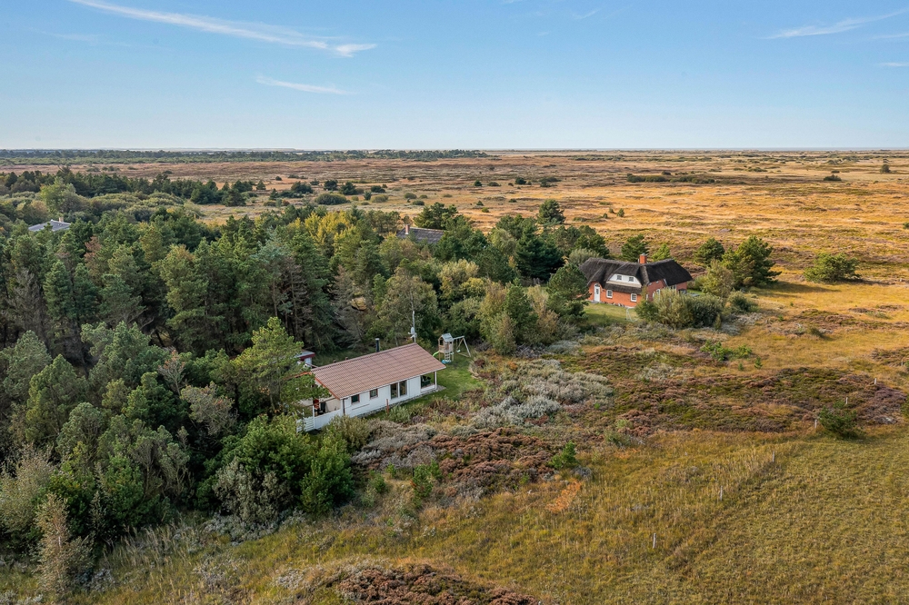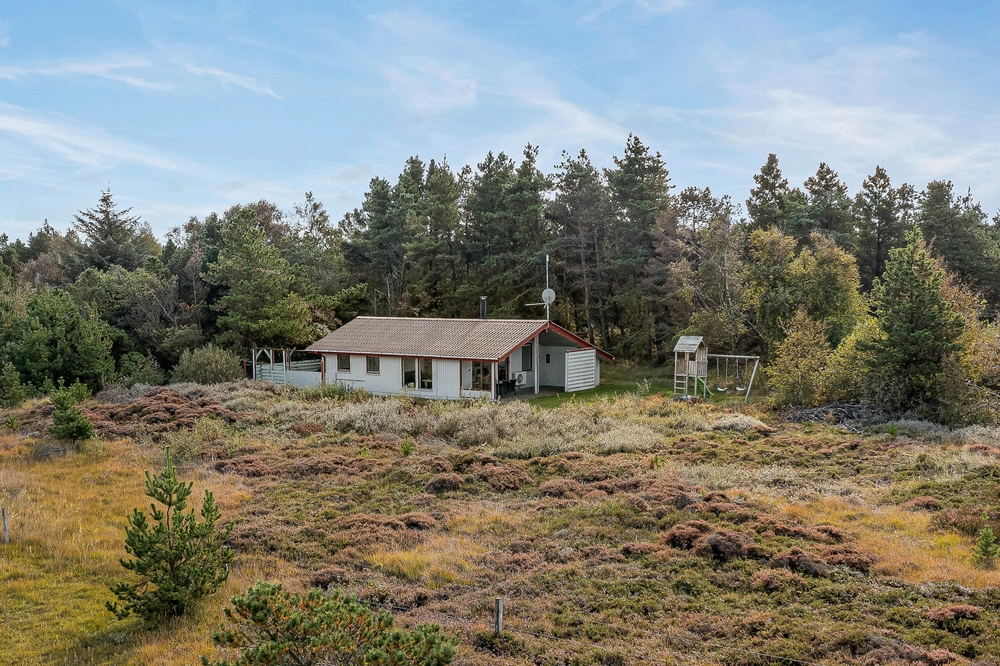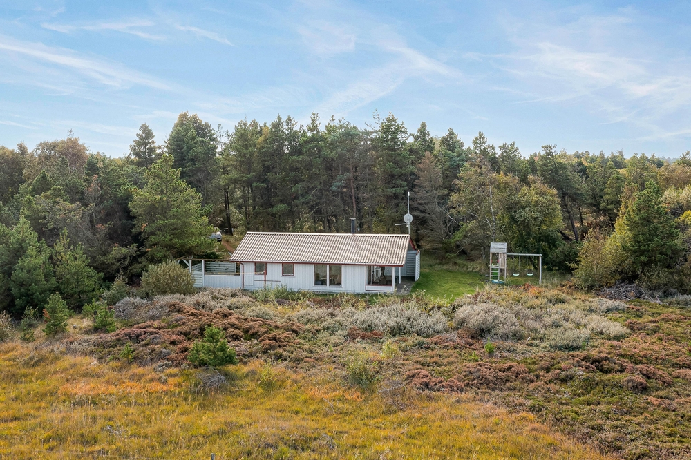Dieses typisch dänische Holzhäuschen besticht durch seine einmalige Lage, direkt am geschützten Heidegebiet. Hier habt ihr einen fantastischen Blick auf die weite Heidelandschaft und seid von Natur und frischer Luft umgeben. Diese könnt ihr besonders auf der offenen und teils überdachten Terrasse genießen. Lehnt euch in den bequemen Gartenmöbeln zurück und lest ein gutes Buch, während eure Kinder Schaukeln oder das Grundstück erkunden.