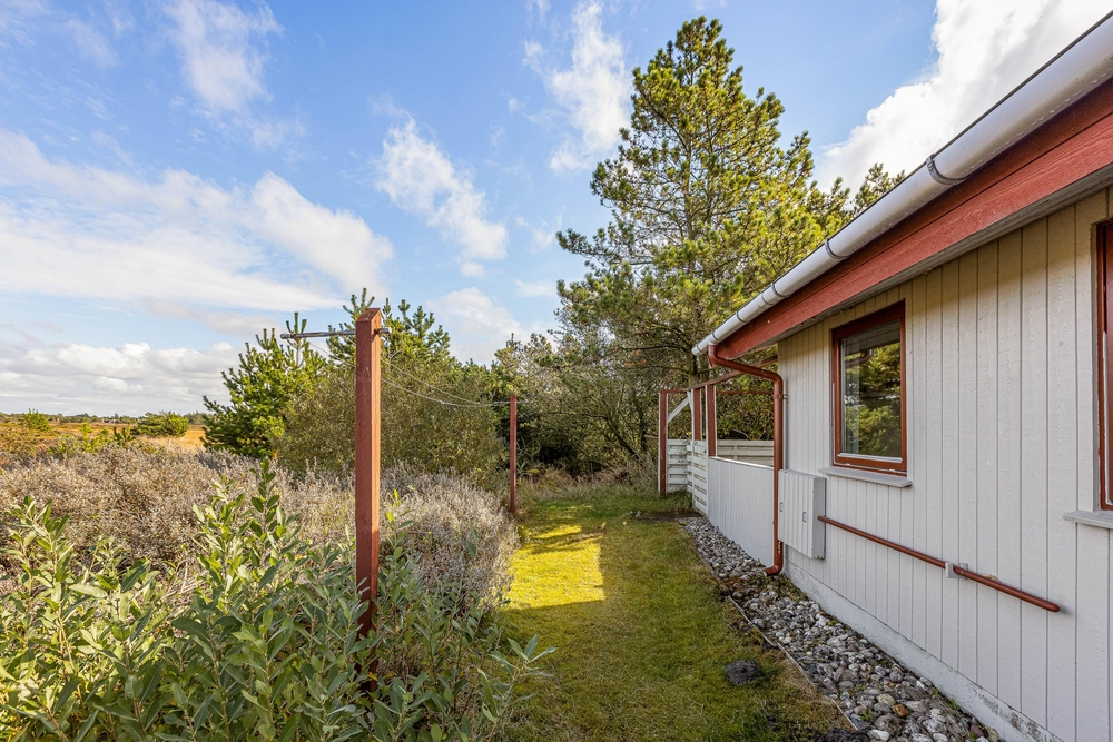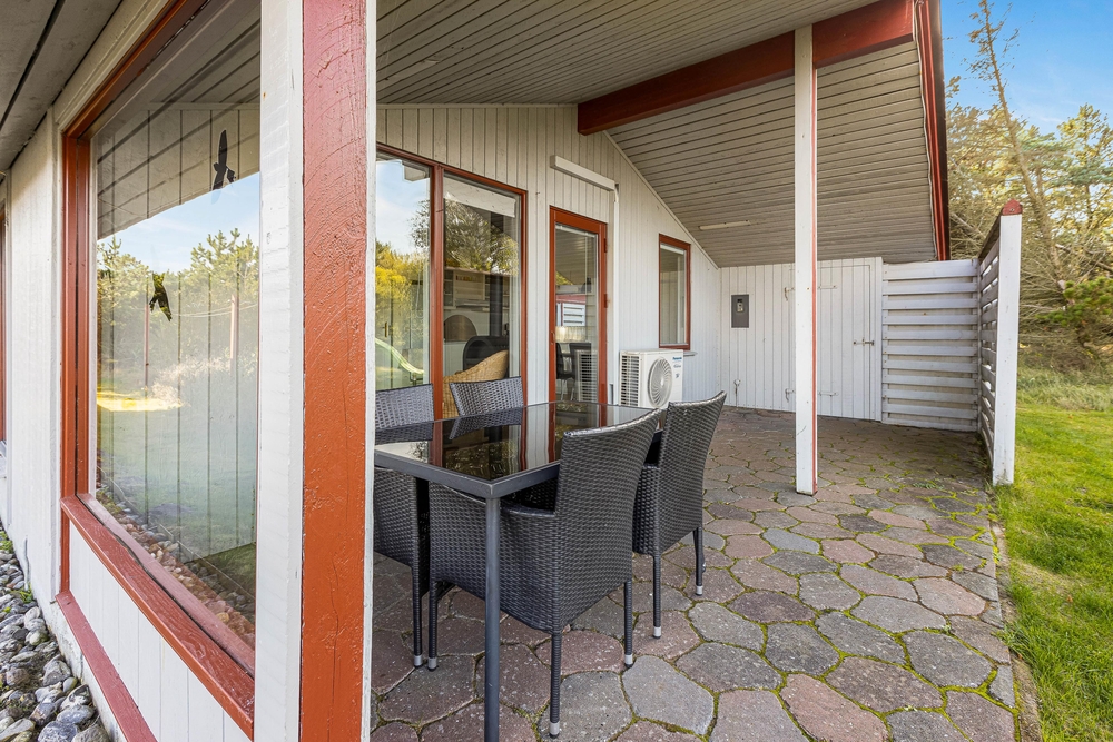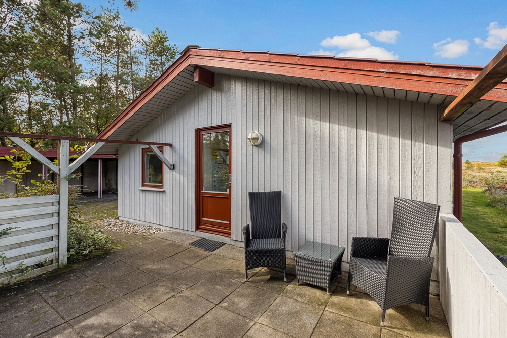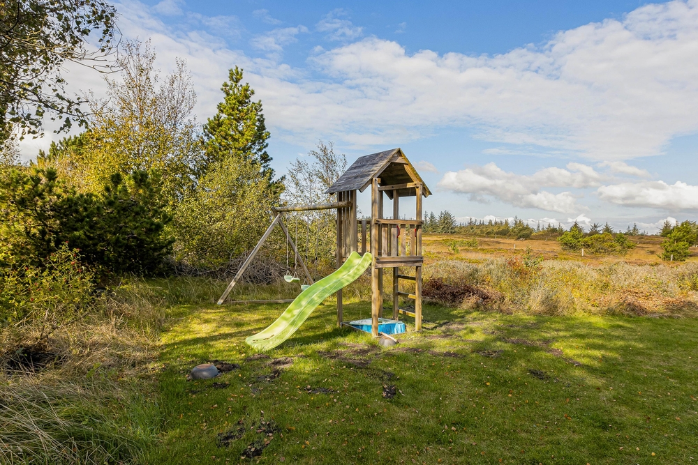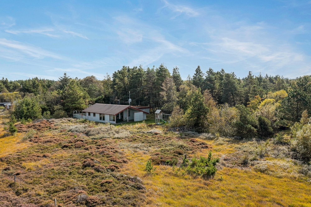 Dieses typisch dänische Holzhäuschen besticht durch seine einmalige Lage, direkt am geschützten Heidegebiet. Hier habt ihr einen fantastischen Blick auf die weite Heidelandschaft und seid von Natur und frischer Luft umgeben. Diese könnt ihr besonders auf der offenen und teils überdachten Terrasse genießen. Lehnt euch in den bequemen Gartenmöbeln zurück und lest ein gutes Buch, während eure Kinder Schaukeln oder das Grundstück erkunden.