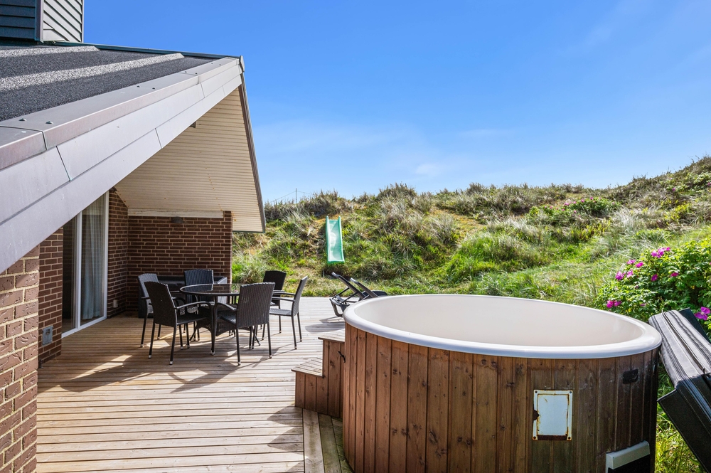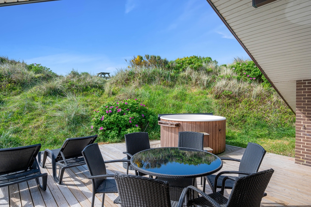 Die ruhige Lage des Ferienhauses sowie das hügelige Dünengrundstück und die schöne Naturumgebung garantieren einen ungestörten Urlaub. Auf der möblierten Terrasse können Kinder und Hund toben, während die Eltern entspannt eine Tasse frischgebrühten Kaffee in der Sommersonne genießen.