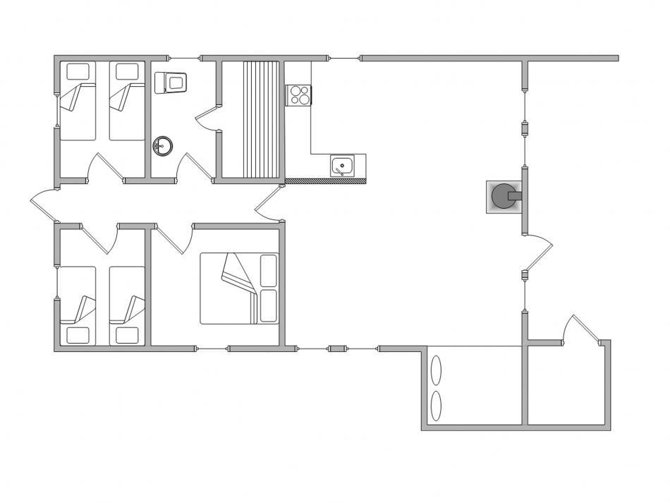 Das Ferienhaus bietet mit 3 Schlafzimmern Platz für 6 Personen. In dem Badezimmer, mit Dusche und Fußbodenheizung, befindet sich der Zugang zur schönen Sauna, wo ihr entspannte Wellnessabende zum Ausklingen der Ferientage genießen könnt.