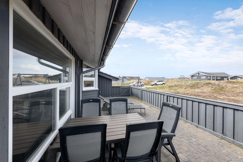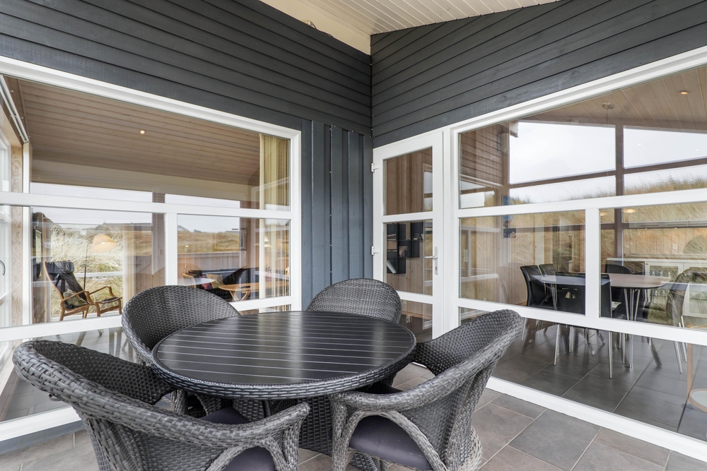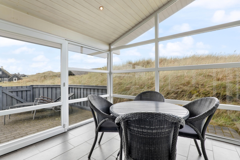 Die geschlossene Terrasse eignet sich hervorragend dafür, den Hund und die Kinder auch mal kurz alleine draußen zu lassen. Hier kannst du auf der Sonnenliege die frische Luft genießen und so richtig entspannen. Falls es mal regnen sollte, musst du nicht auf den schönen Anblick der Dünenlandschaft verzichten, denn der kleine Wintergarten lädt ebenfalls zu entspannten Stunden mit einem Buch ein.